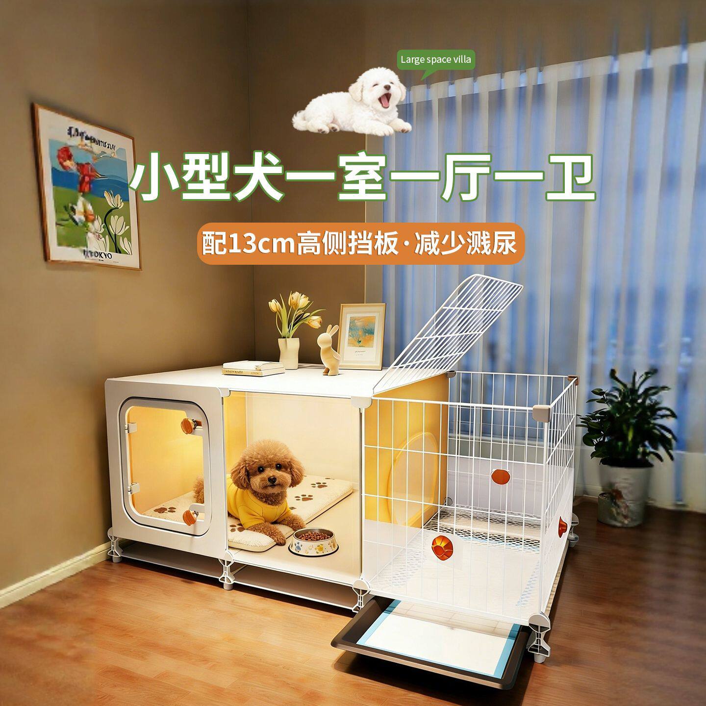 狗笼子小型犬一室一厅一卫家用室内狗窝带厕所分离小狗别墅泰迪笼