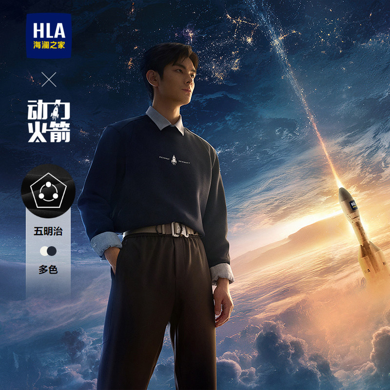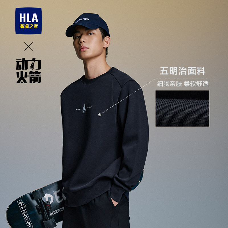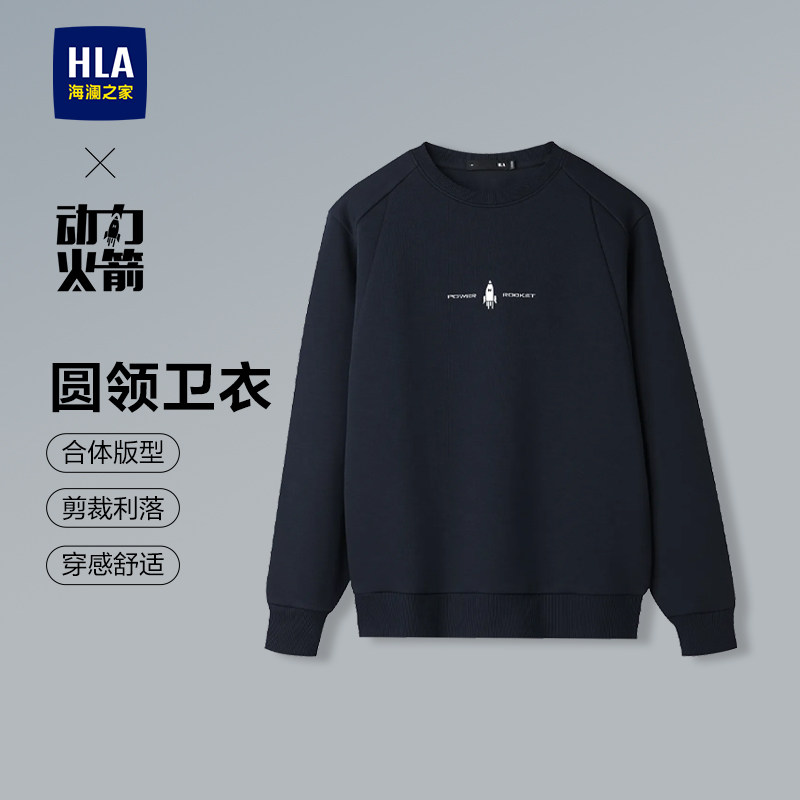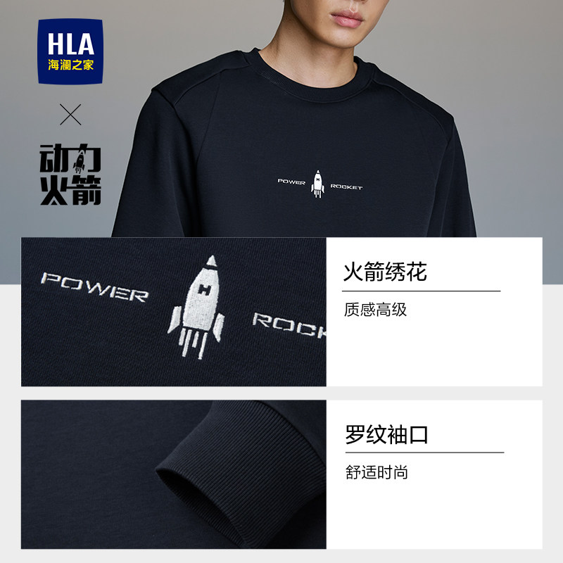 HLA/海澜之家运动动力火箭系列卫衣25秋季新款五明治圆领上衣男