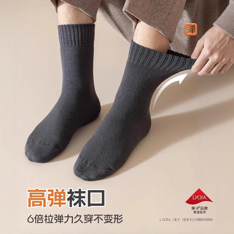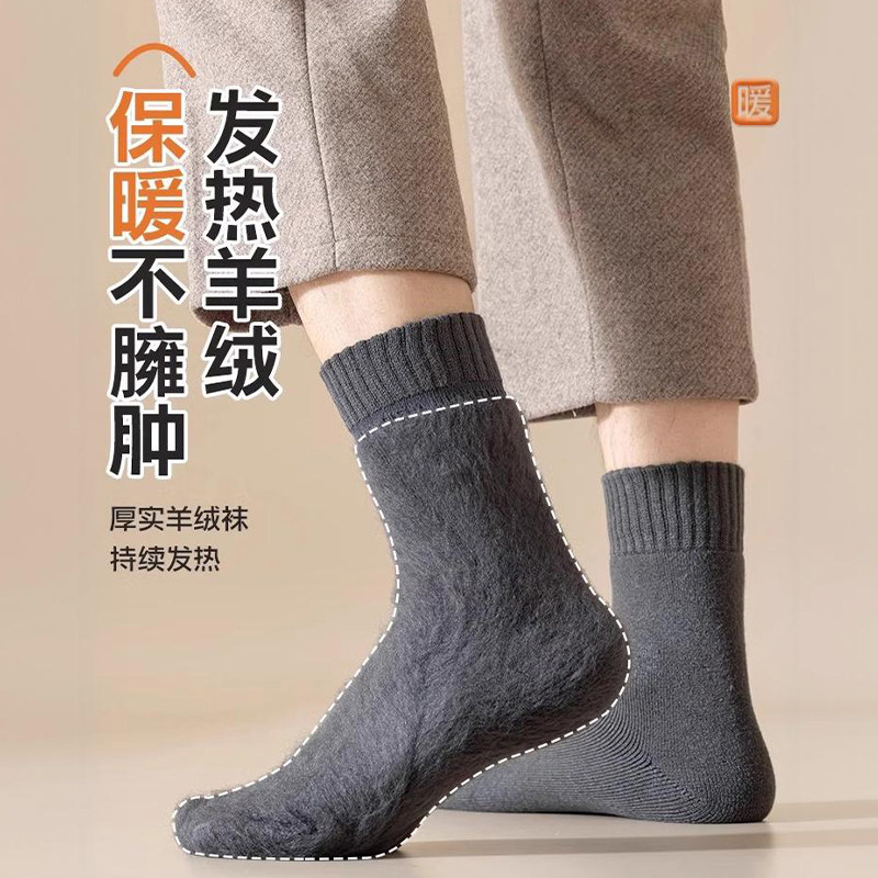 厚羊绒袜子男秋冬季加绒加厚中筒袜地板袜男士保暖羊毛袜不勒脚