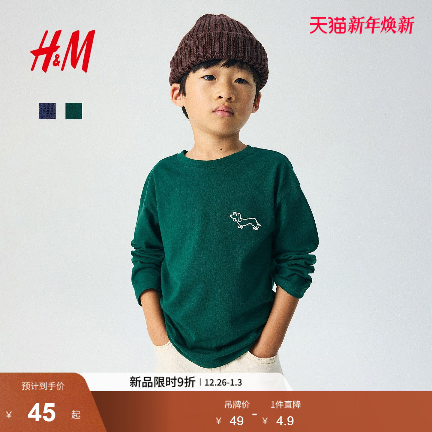HM童装儿童男童T恤2025新款童趣舒适圆领柔软印花长袖上衣1304057