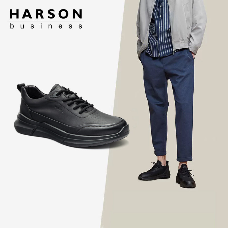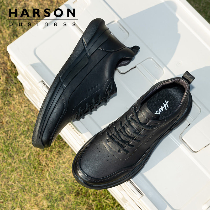 哈森男鞋冬季鞋子黑色公务通勤鞋商务休闲皮鞋男士真皮运动鞋软底