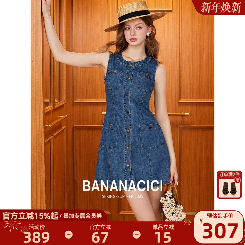 BANANA CICI2025年夏季新款简约水洗牛仔短裙休闲无袖背心连衣裙
