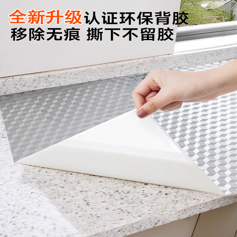 厨房防油贴纸防火耐高温灶台贴膜自粘防水防潮墙面翻新铝箔台面