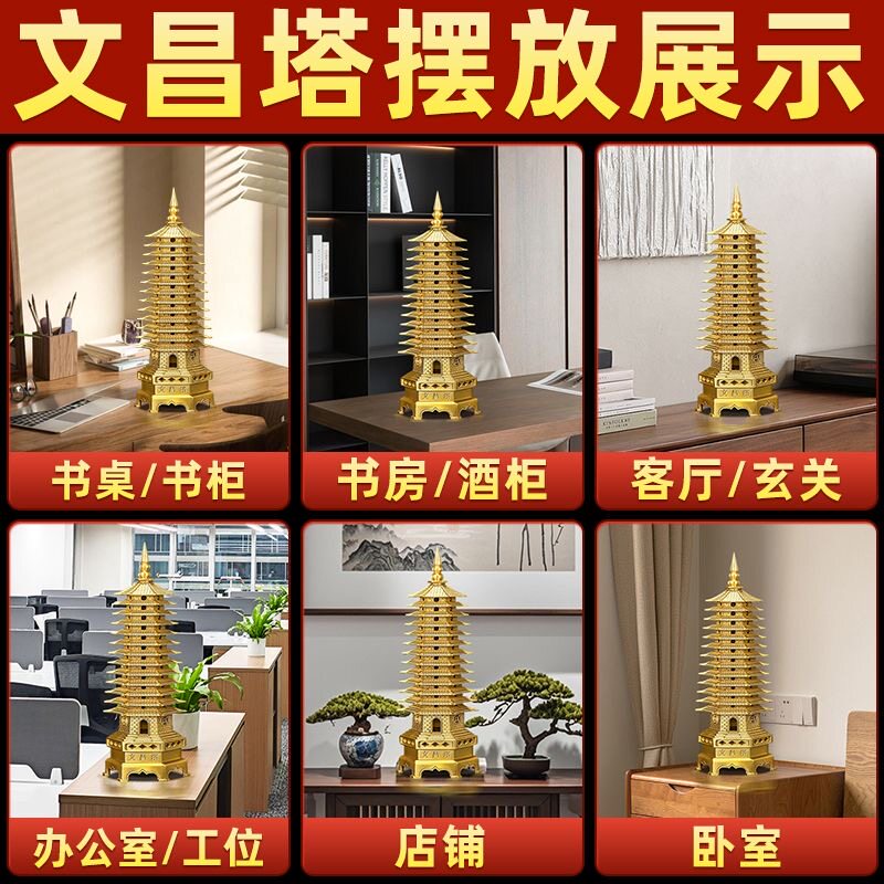 普陀山文昌塔摆件黄铜13层十三层办公室9层九层桌面装饰客厅工位