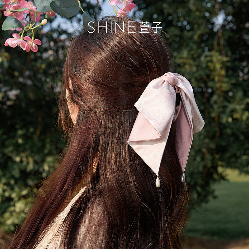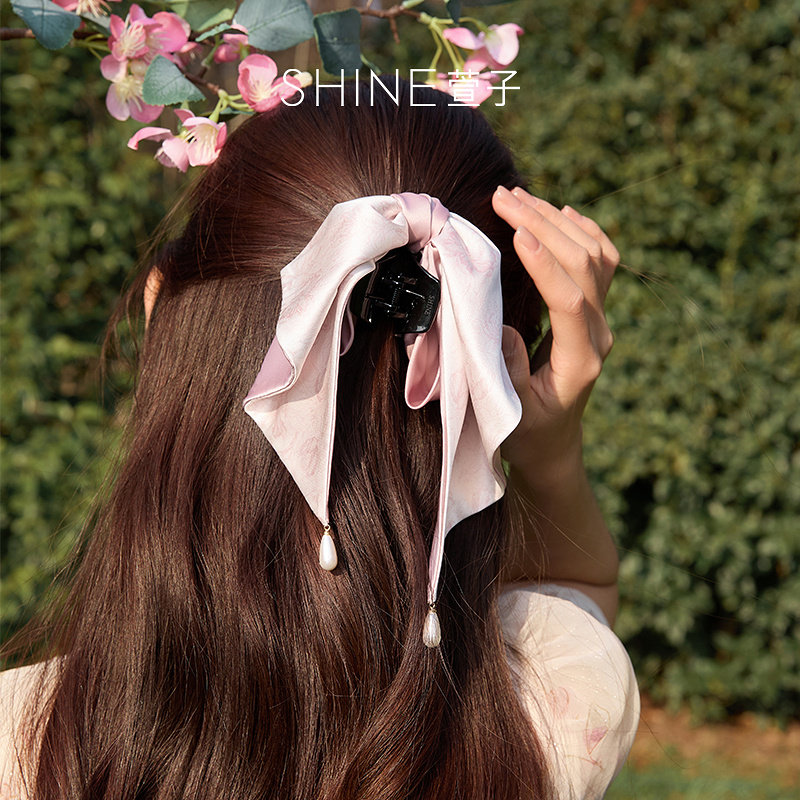 SHINE萱子饰品海棠系列花朵印花抓夹女气质缎面发夹早春配色