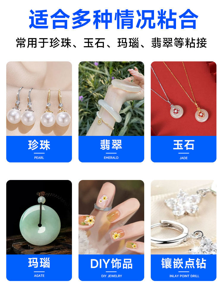 珍珠专用胶珠宝饰品吊坠项链粘合剂低白化粘首饰耳钉玛瑙翡翠戒指胶贴黏钻diy手工发夹首饰珠宝镶嵌强力胶水