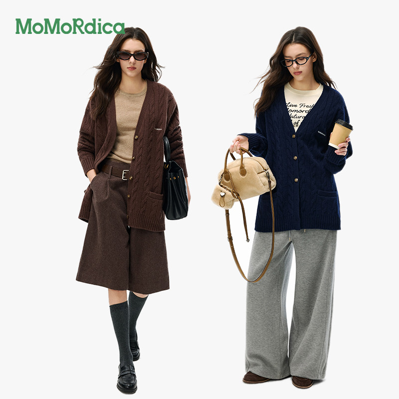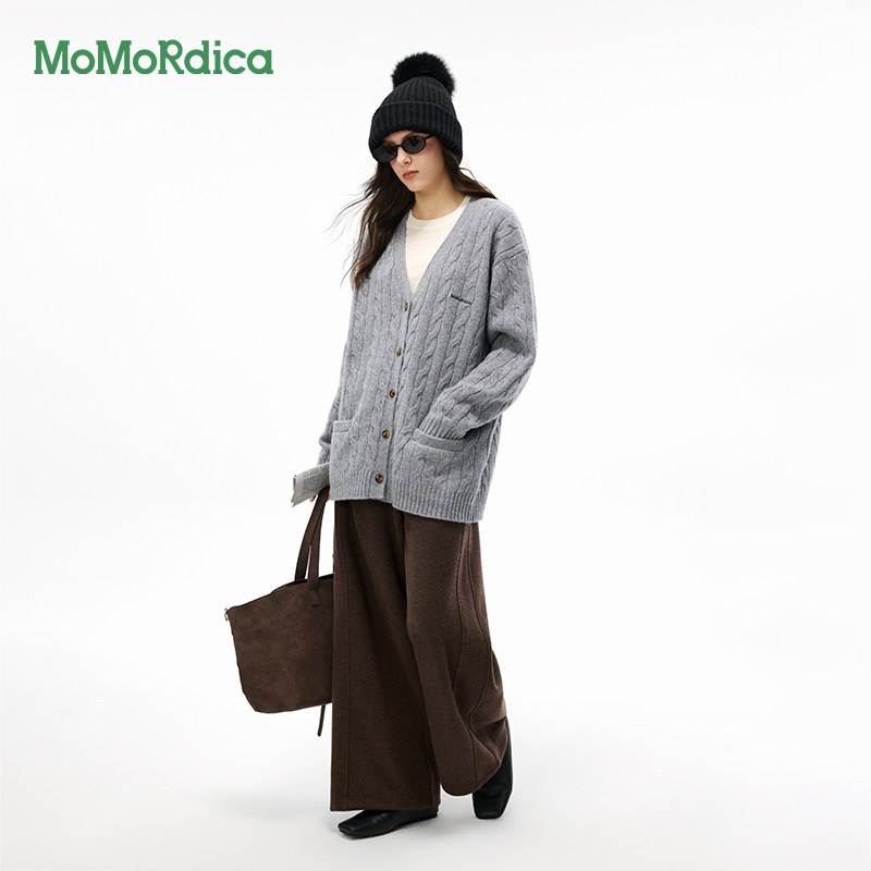 Momordica2025秋冬羊毛羊绒开衫V领毛衣