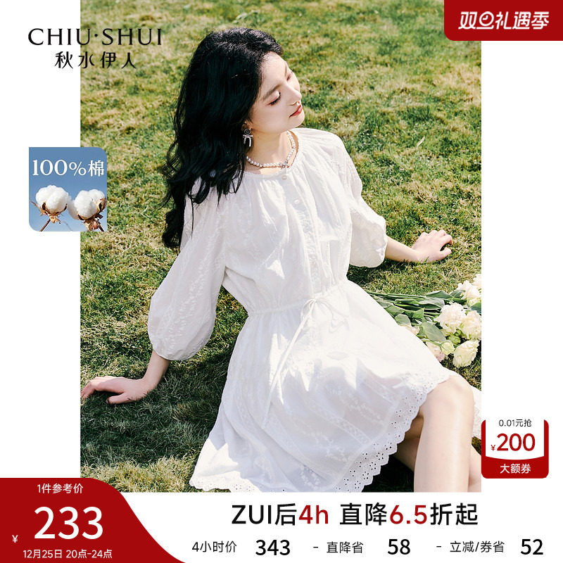 【100%棉】白色好看连衣裙女夏2025秋冬新款通勤绝美高级a字裙子