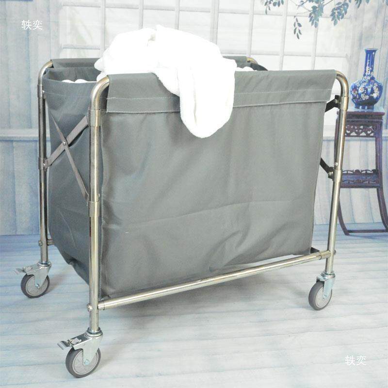 折叠布草车不锈钢收集手推车保洁房口车酒店宾馆客房服务车工作车