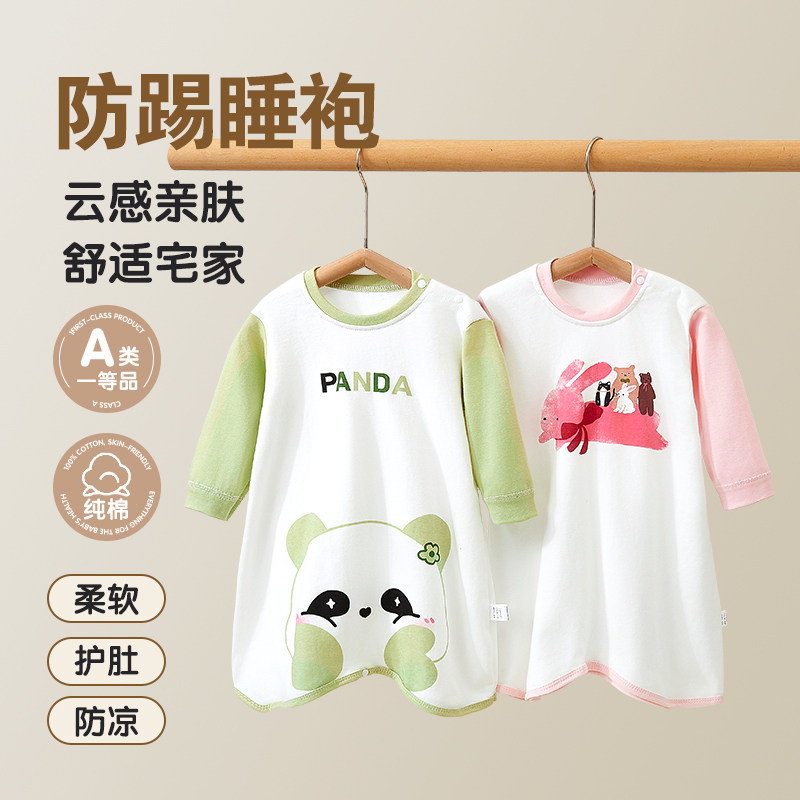 宝宝连体衣春秋a类纯棉睡袍睡裙防踢家居服婴儿衣服男女儿童睡衣