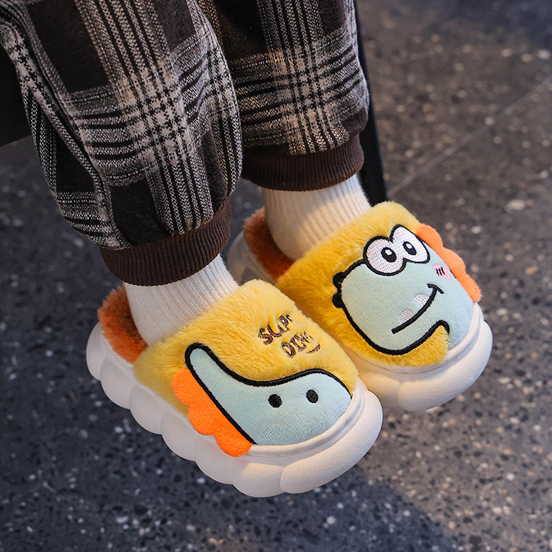 2025新款儿童棉拖鞋男童室内女宝宝小孩卡通恐龙防滑亲子拖鞋秋冬