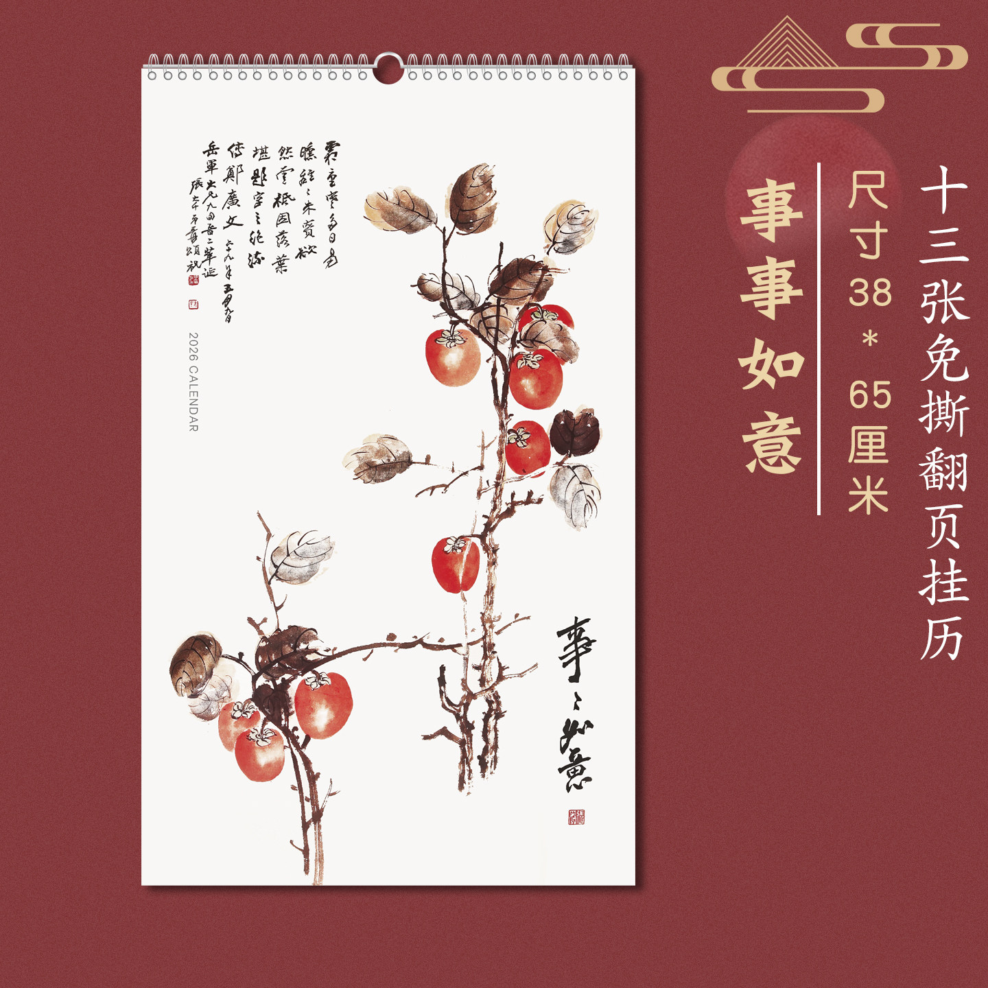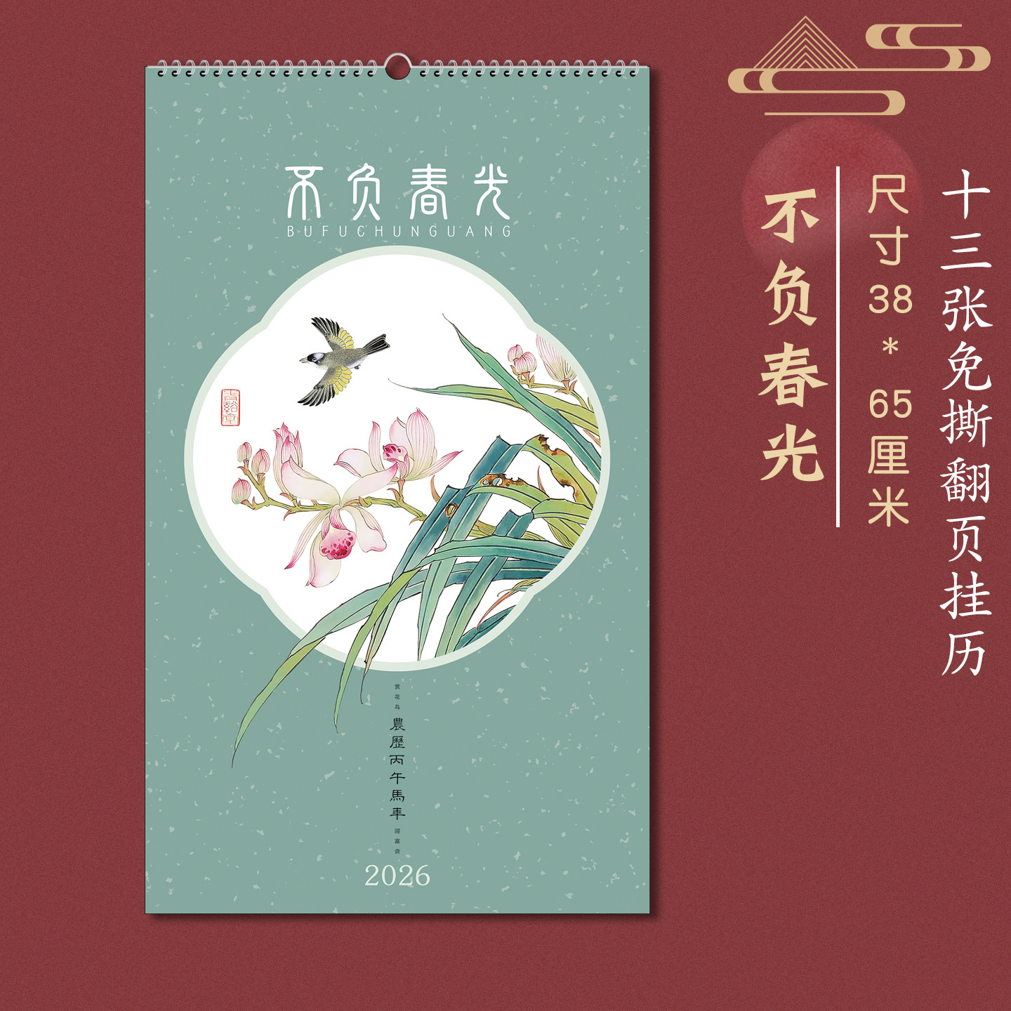 2026年新款马年挂历定制家用挂墙山水花鸟日历油墨画风景免撕十三张记事月历公司新年礼品广告订做定做logo