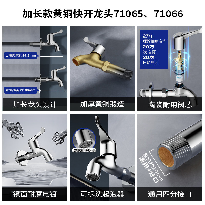 九牧拖把池水龙头加长单冷防溅普通家用入墙式阳台洗衣池拖布墩布