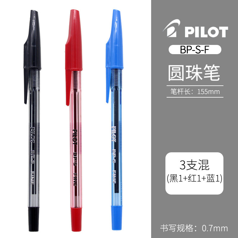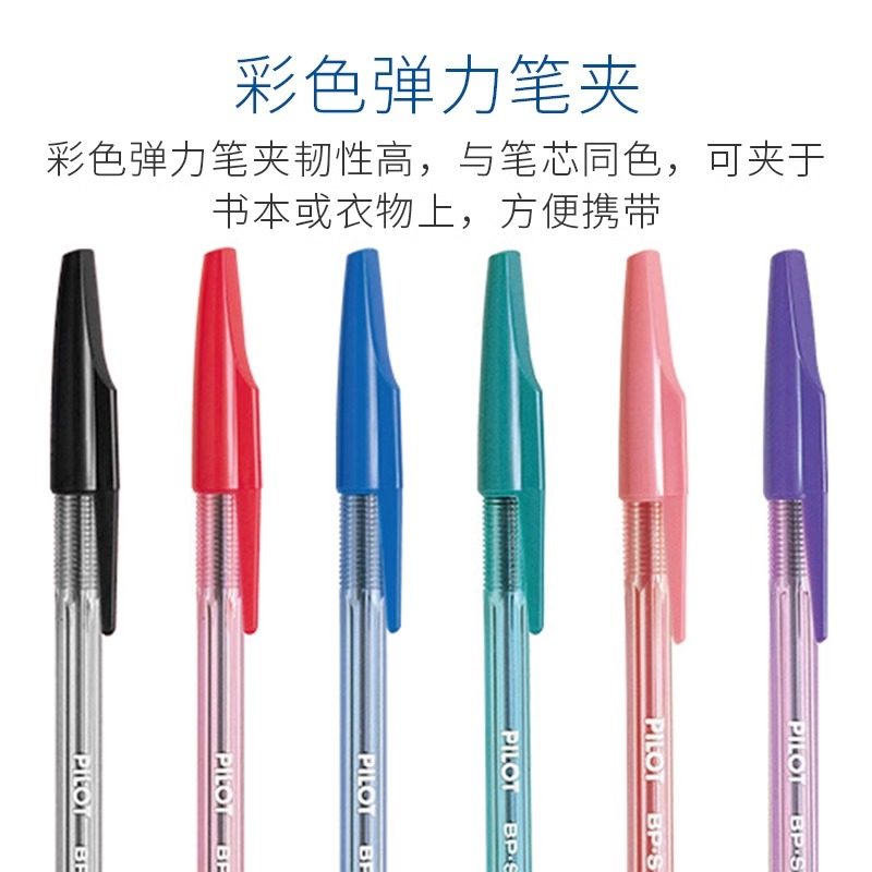 日本PILOT百乐啄木鸟圆珠笔BP-S-F经典0.7mm透明杆拔帽油笔学生办公专用蓝色黑色红色原子笔顺滑中油笔签字笔