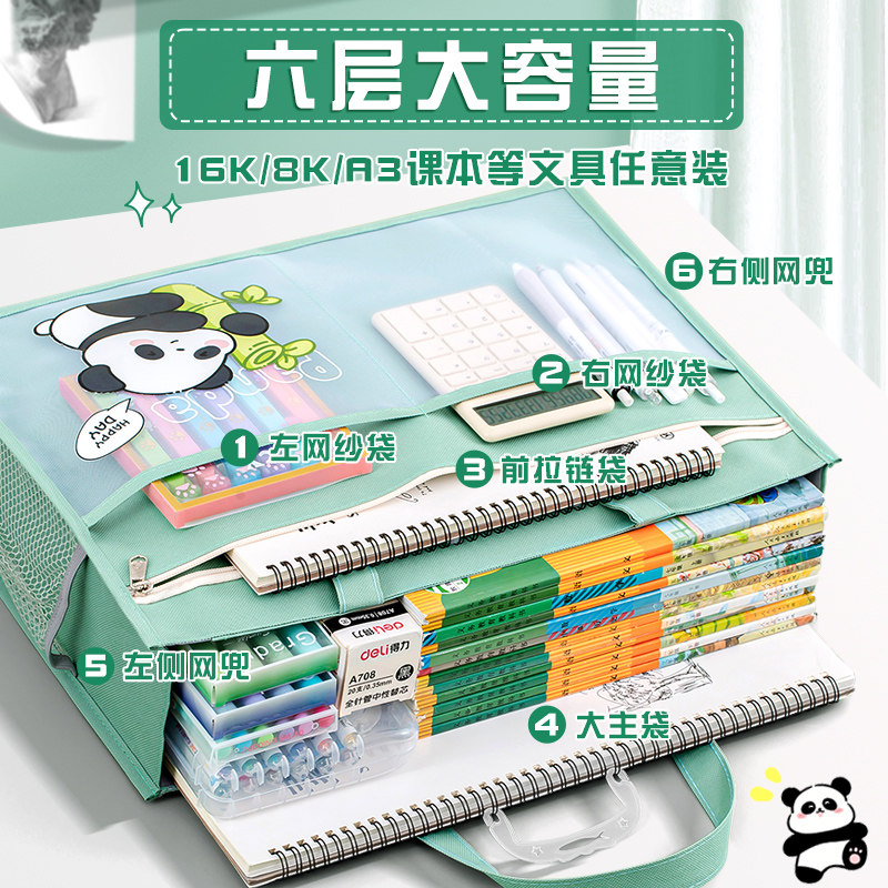 超大号A3美术袋8开8k文件袋手提书袋防水拉链式儿童补习袋大容量帆布小学生画画马克笔收纳包网格手拎资料包