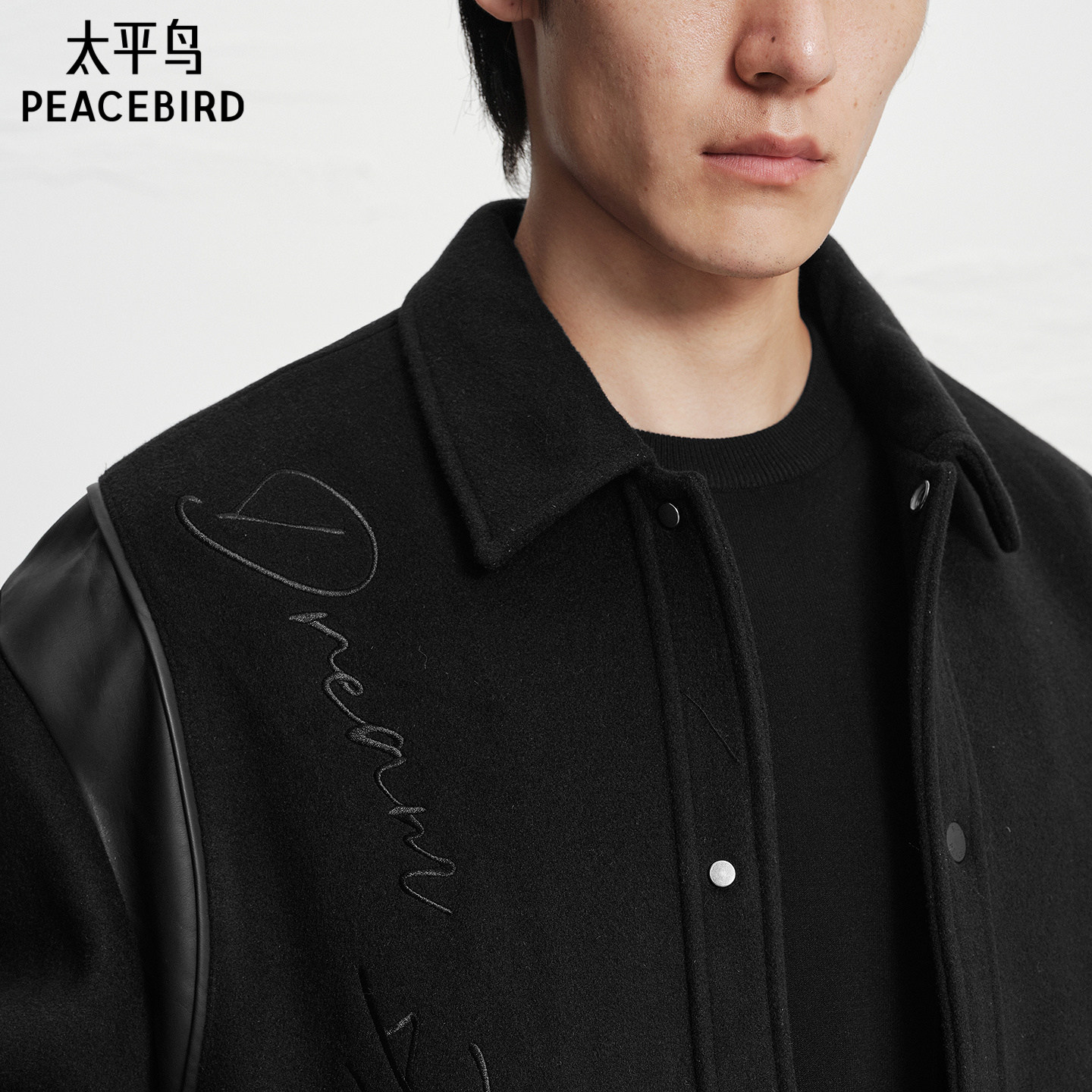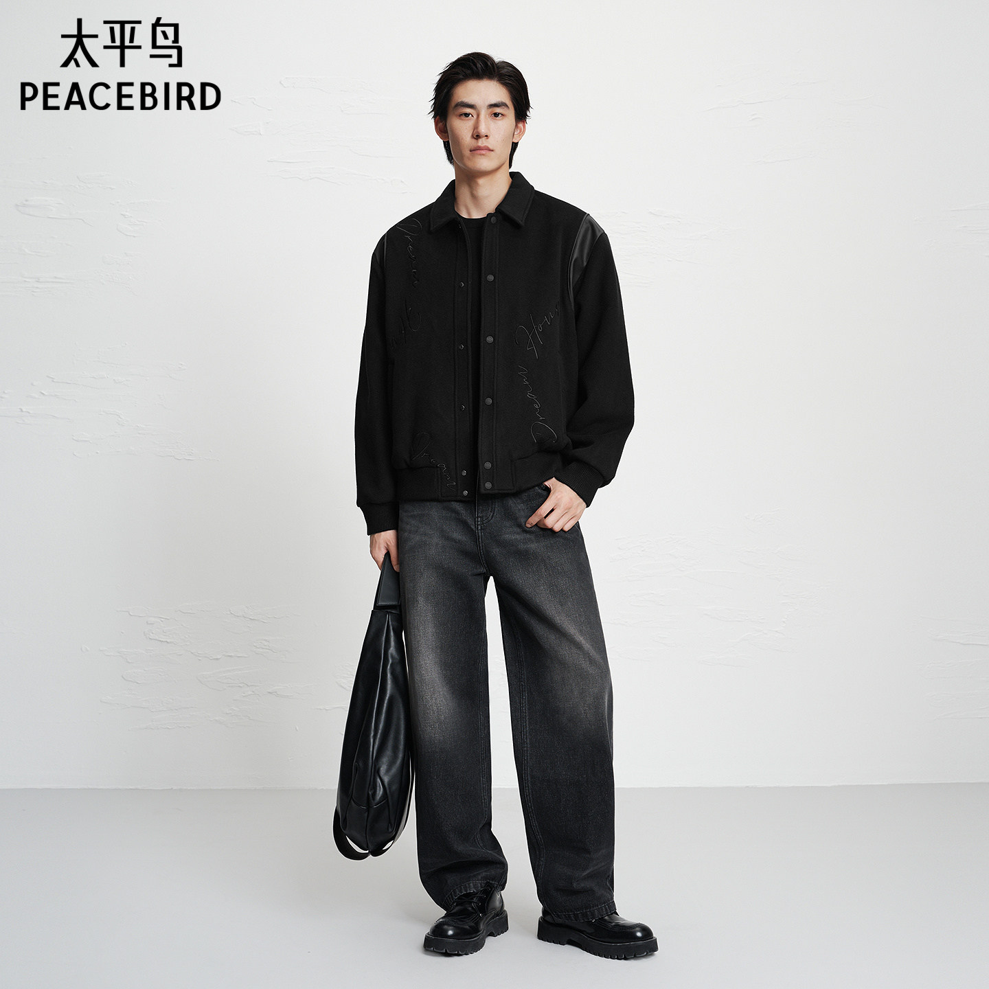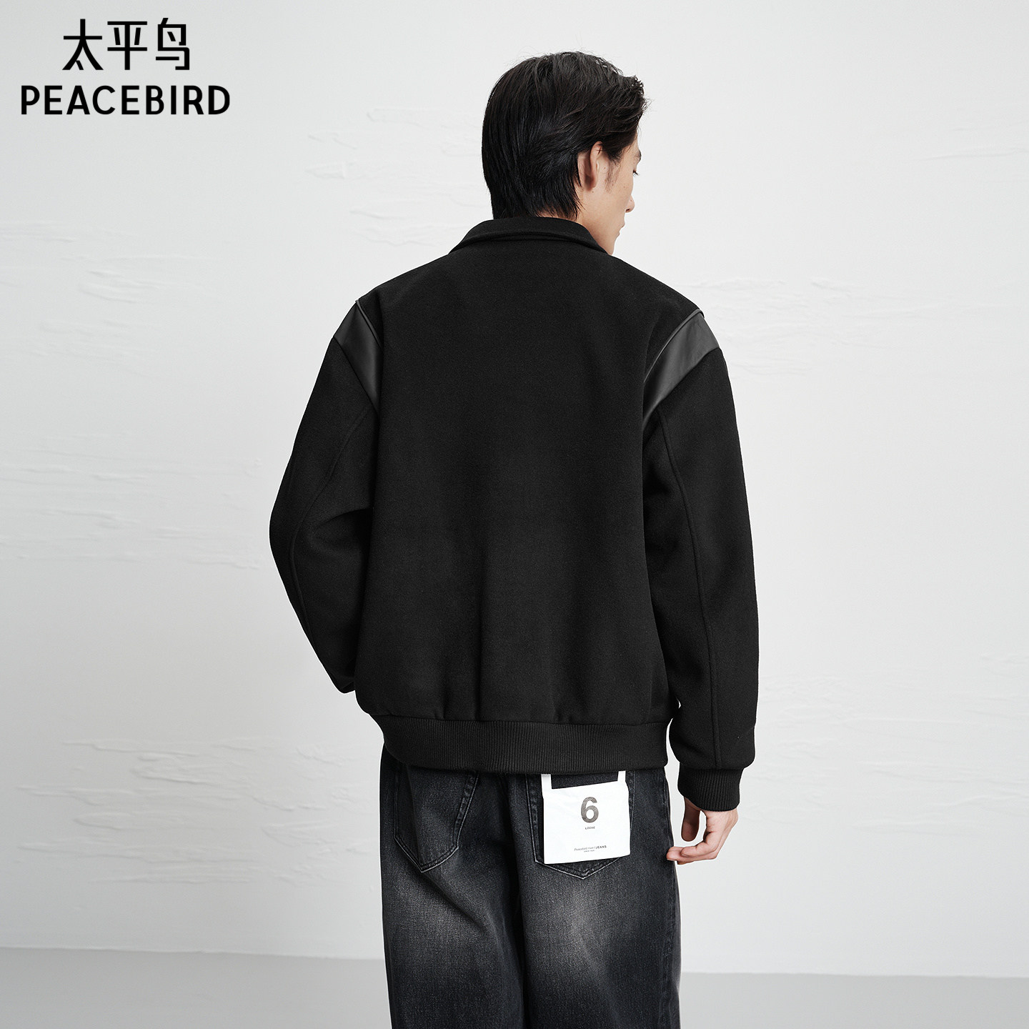 太平鸟男装 Daria ong联名合作系列黑色翻领夹克外套男