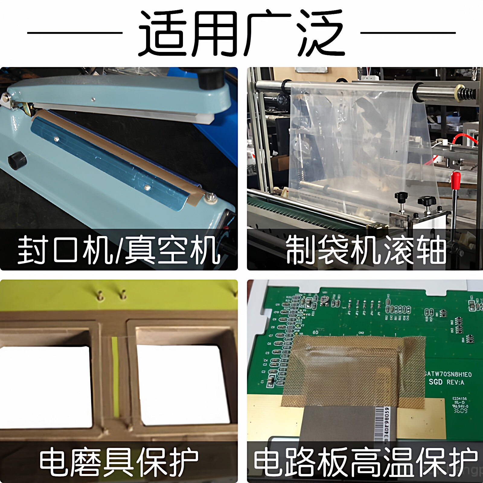 铁氟龙胶布耐高温200度绝缘胶带垫片手柄防磨封口机真空包装机切袋机高温布模具发热丝防粘隔热布特氟龙胶带