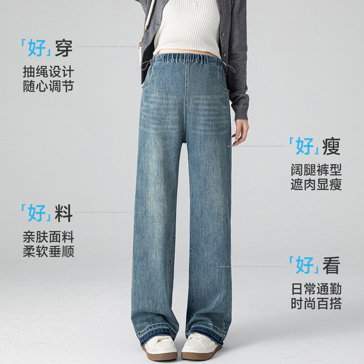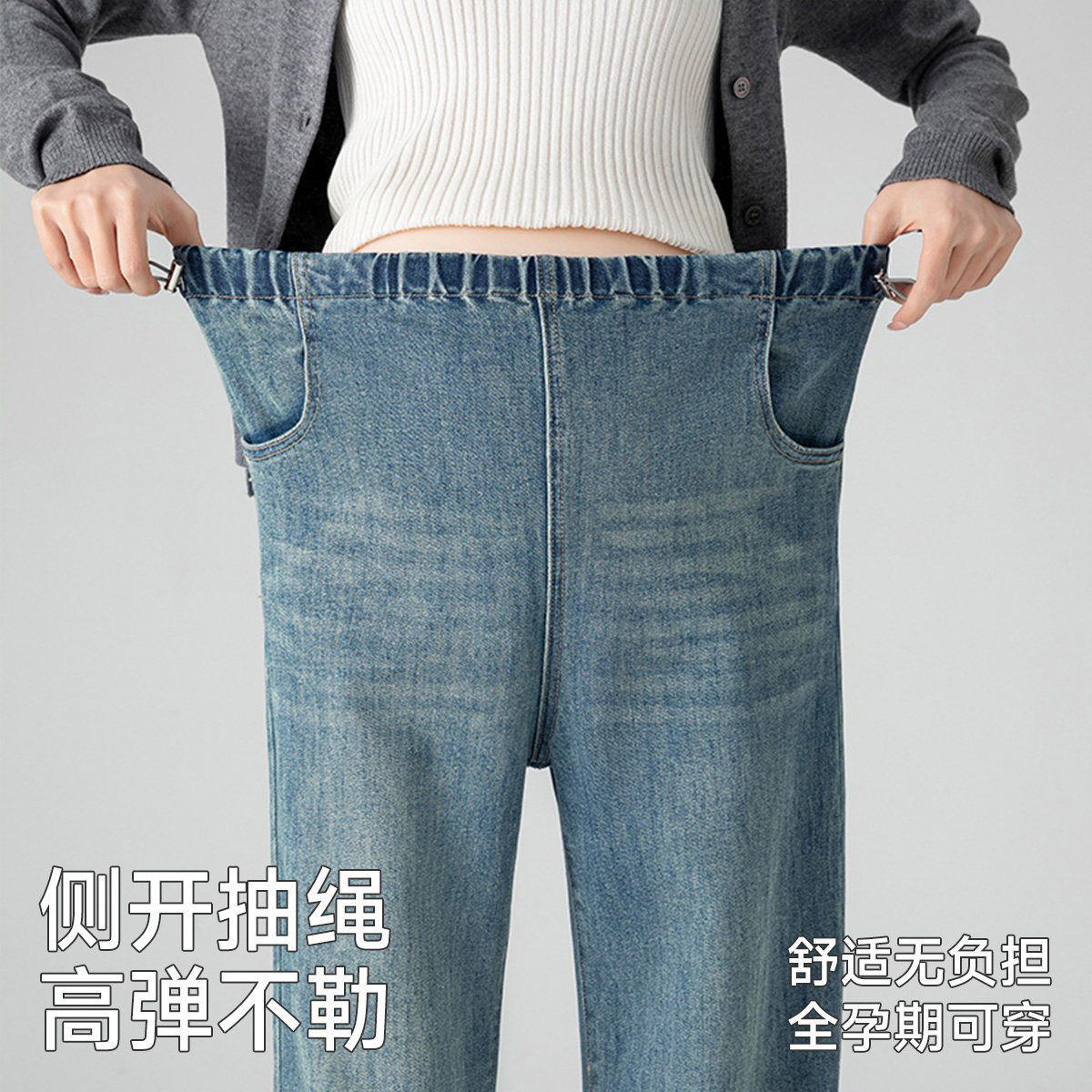 孕妇裤春秋款加绒外穿2026新款无托腹丹宁蓝牛仔裤不勒肚子阔腿裤