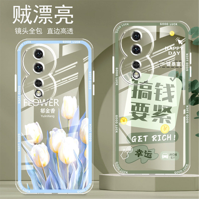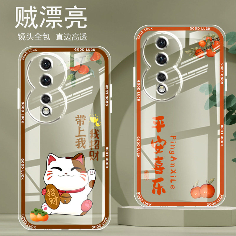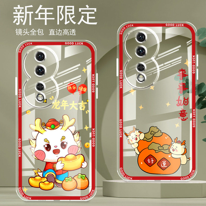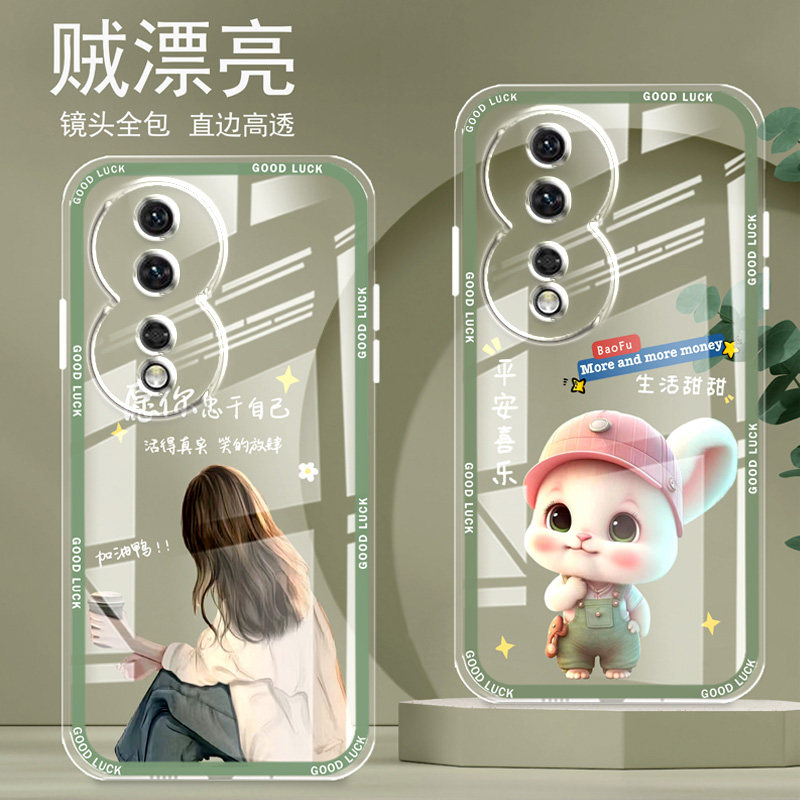 直边晶透荣耀80手机壳80se新款全包边镜头全包防摔新年保护套女硅胶软壳可爱个性卡通新品高级适用于华为