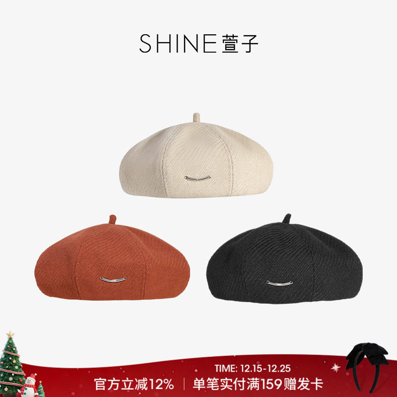 SHINE萱子饰品优雅简约贝雷帽圣诞配饰时尚女款大头围帽子