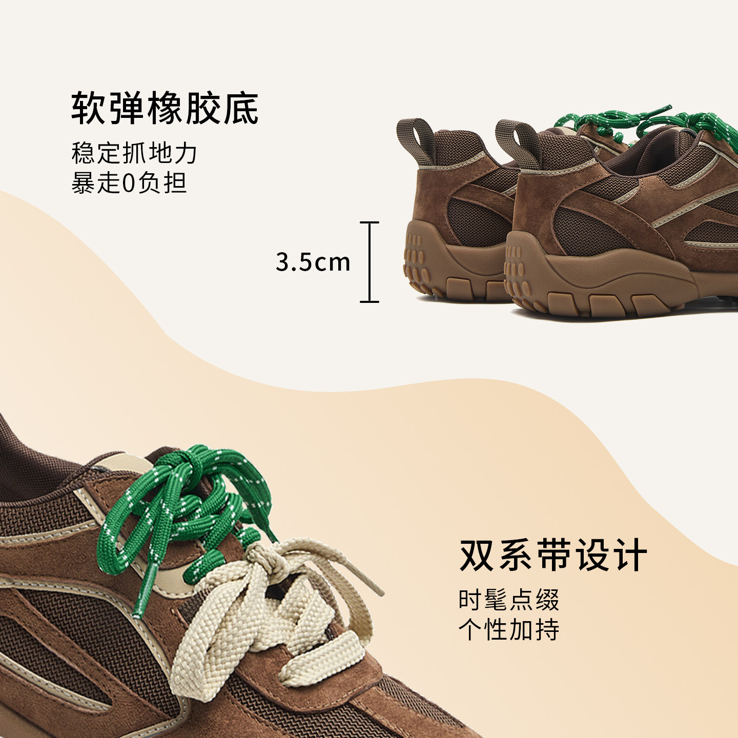 Chio2nd南风 4cm增高磨砂牛皮德训鞋子女款秋冬复古休闲鞋运动鞋