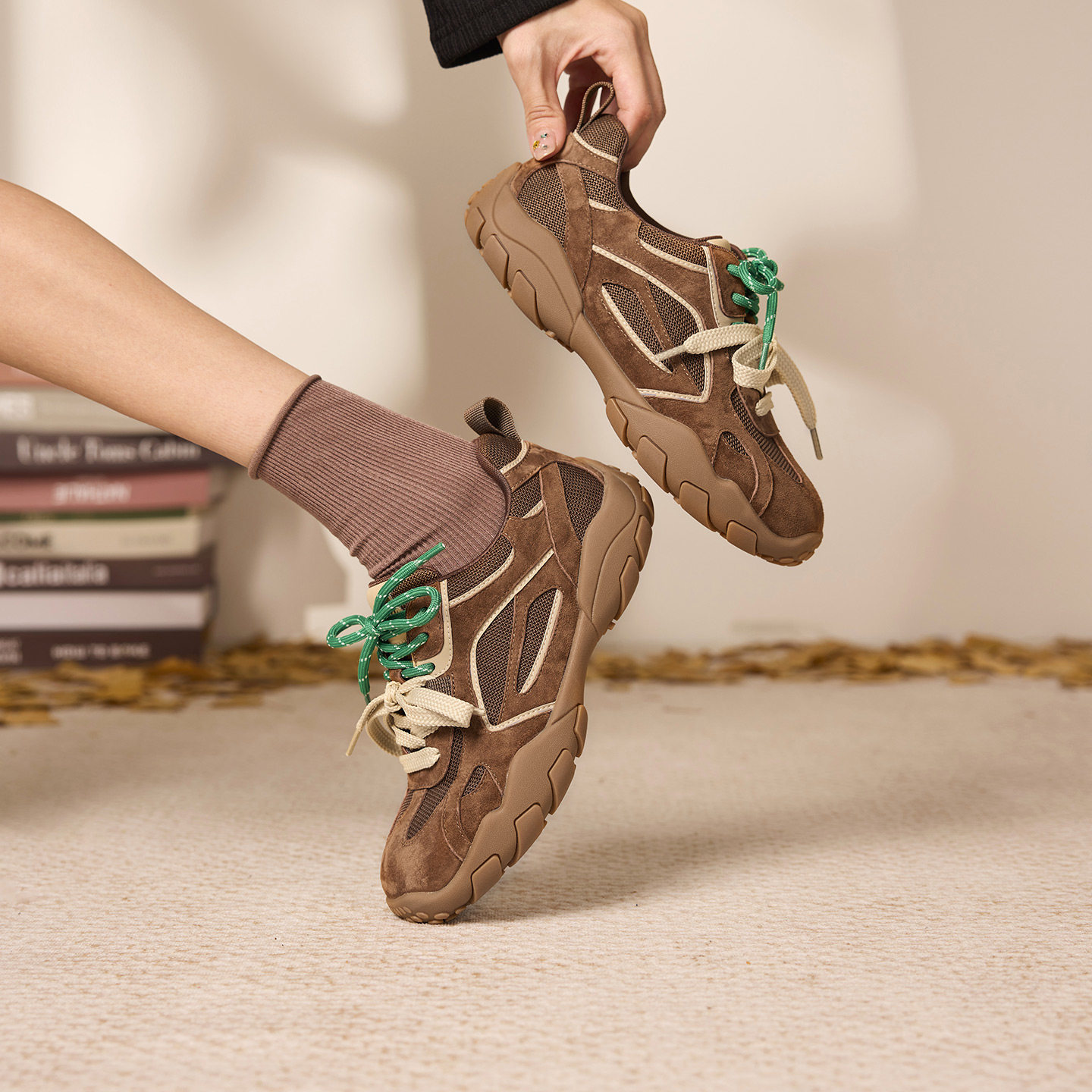 欧货真皮松糕厚底老爹鞋女2025秋冬新款复古小个子增高运动休闲鞋