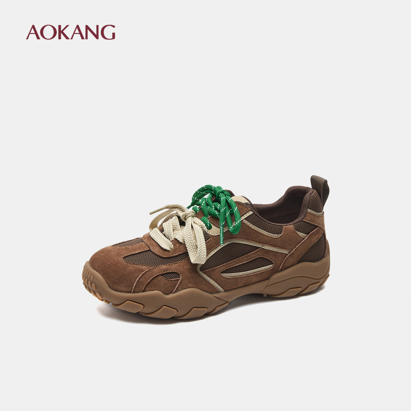 奥康 女鞋2025秋季赛车鞋潮流跳色双鞋带甜酷个性德训鞋休闲鞋