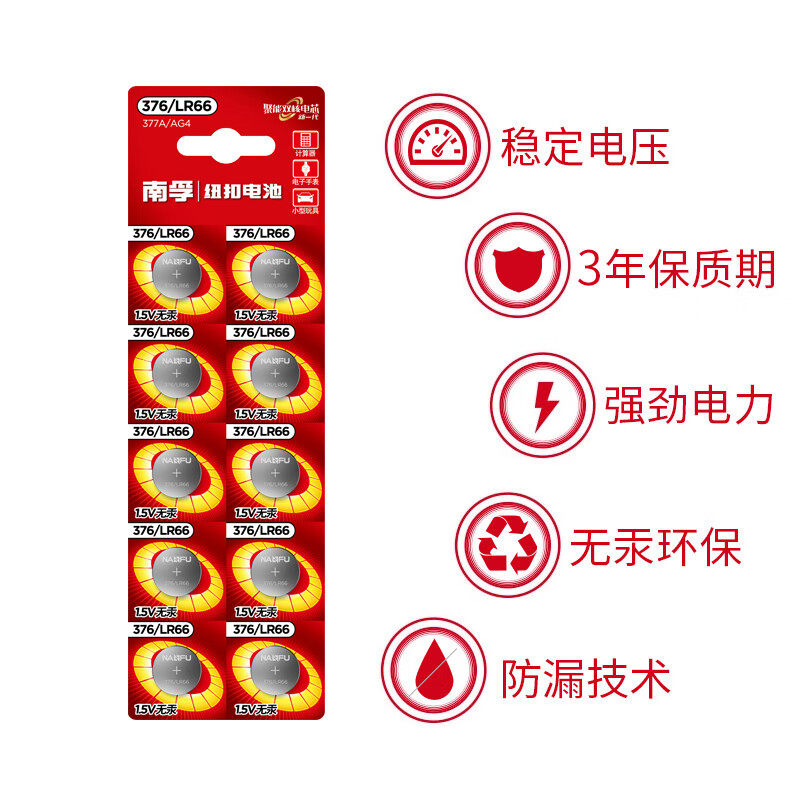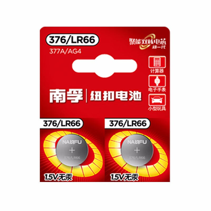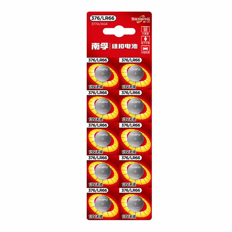 南孚碱性1.5v纽扣电池376/lr66适用码表电子手表计算器遥控器玩具