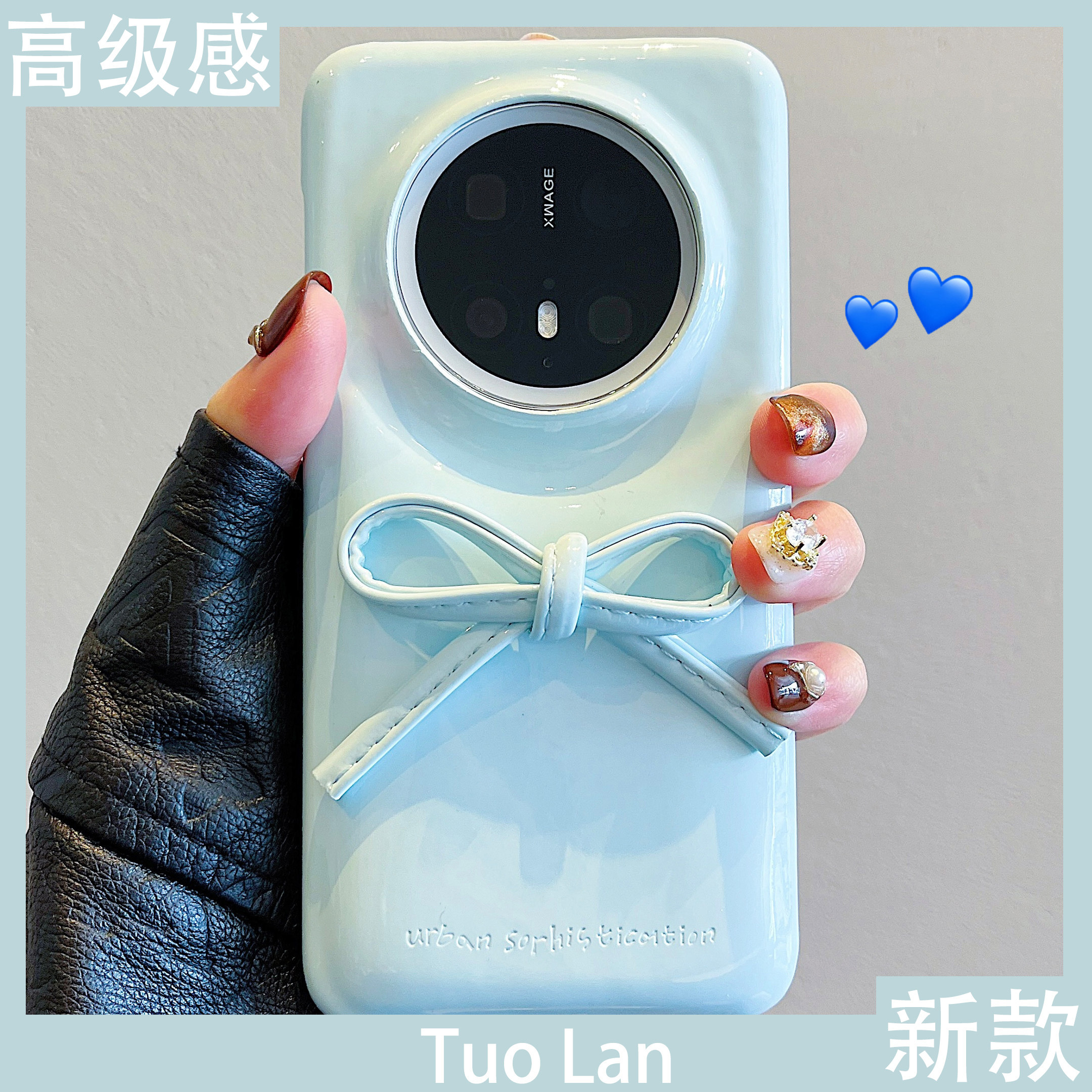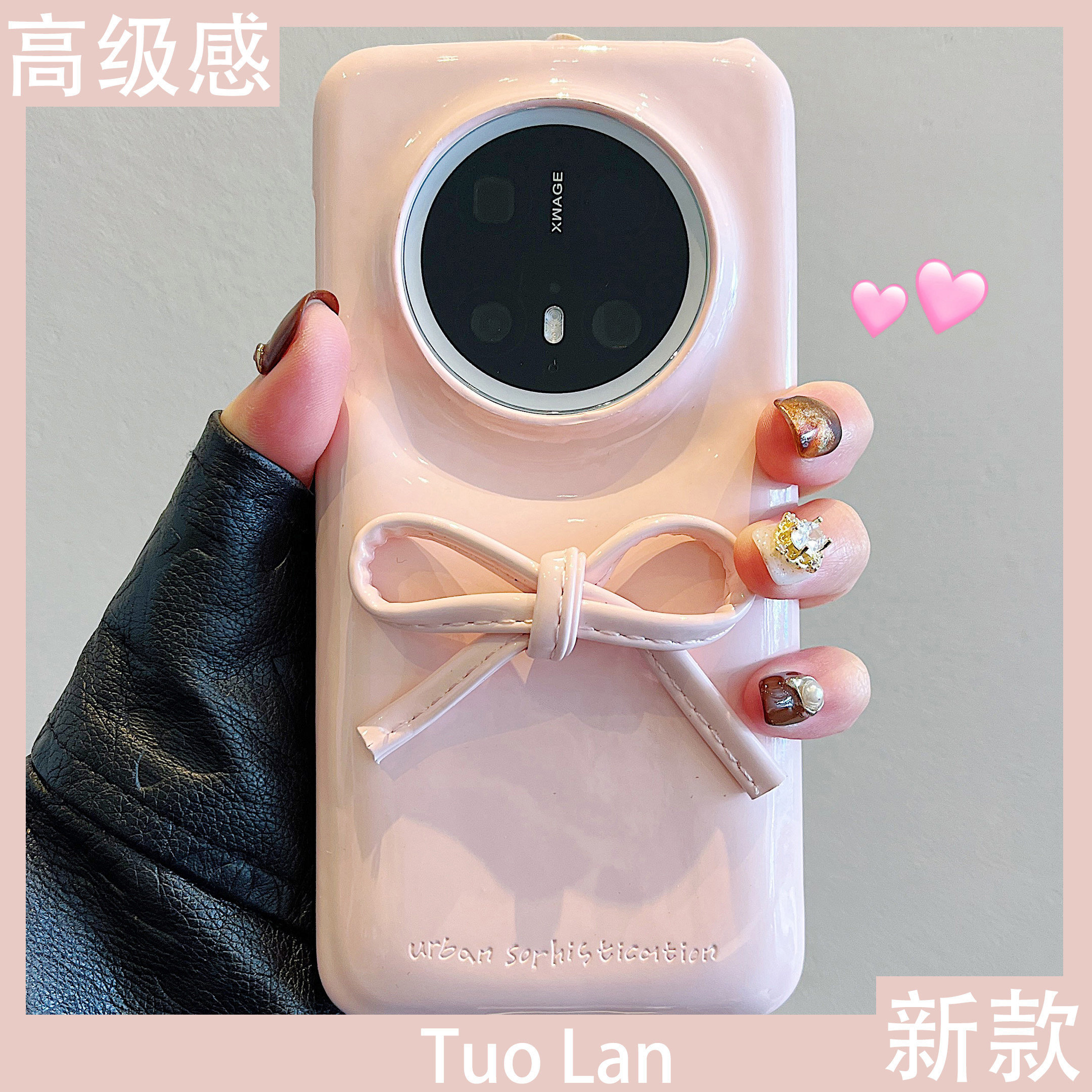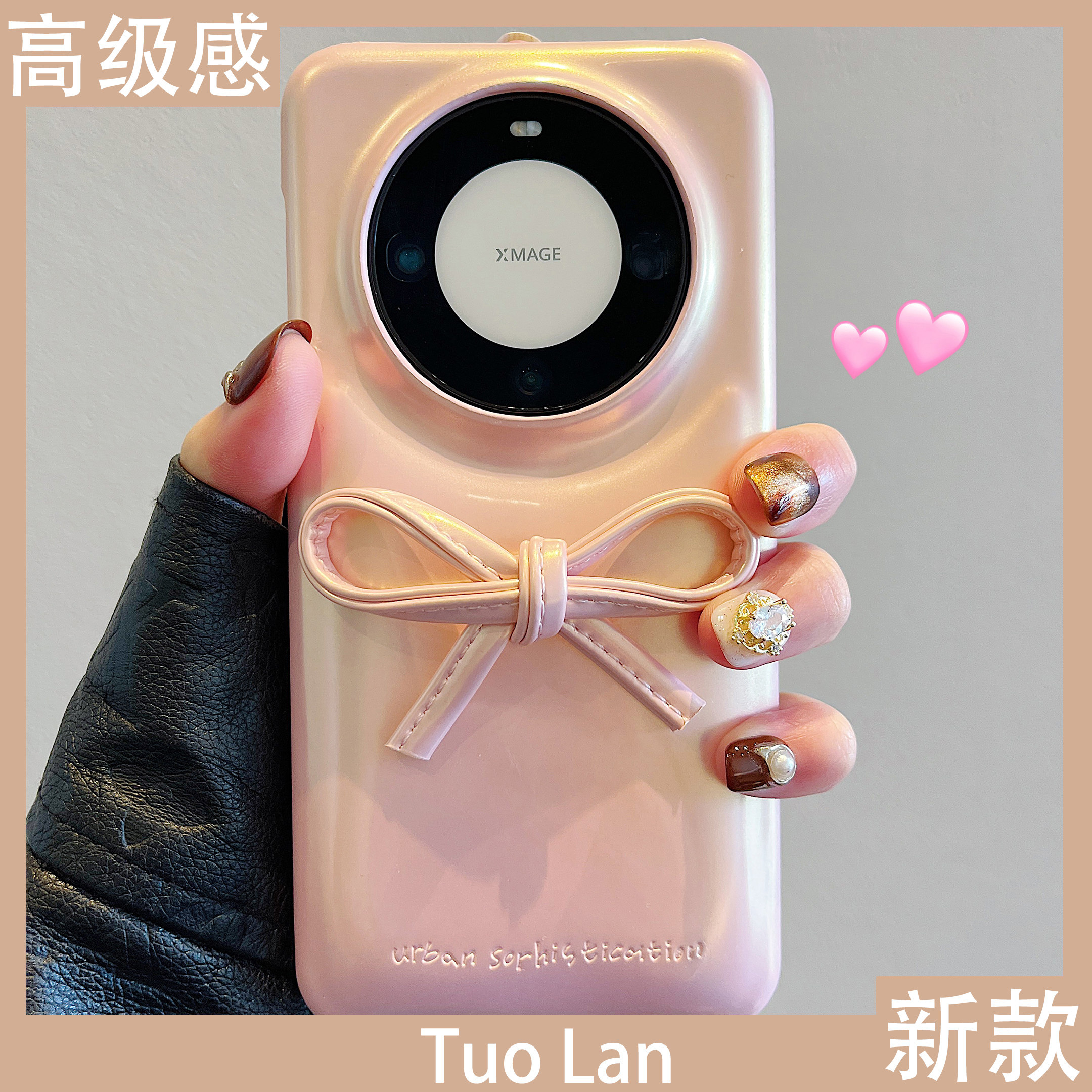拓岚 适用华为mate70pro+新款手机壳pura70秋冬ins风纯色ultra立体编织蝴蝶结mate60/50/40pro皮质鼓包网红女