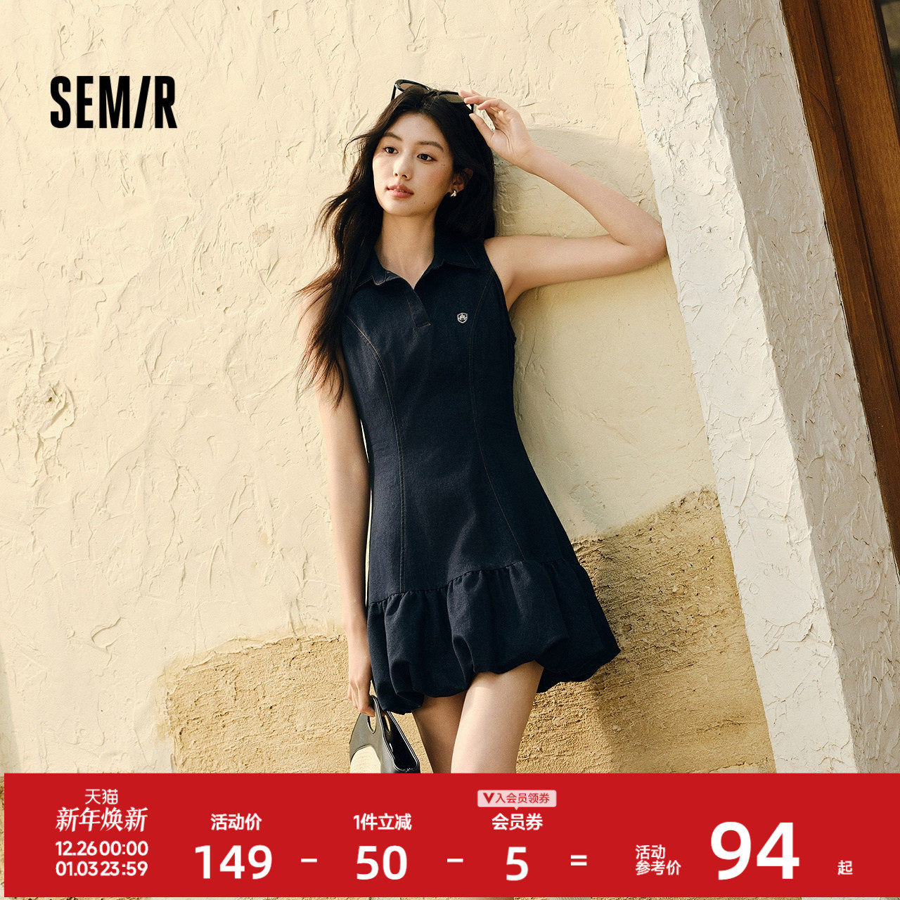 森马连衣裙女polo领无袖花苞裙甜酷2025夏新款辣妹分割短裙小个子