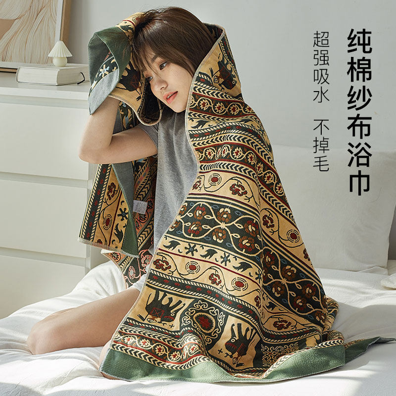 如奕90*180超大纯棉纱布浴巾家用加大加厚全棉吸水速干家用大毛巾