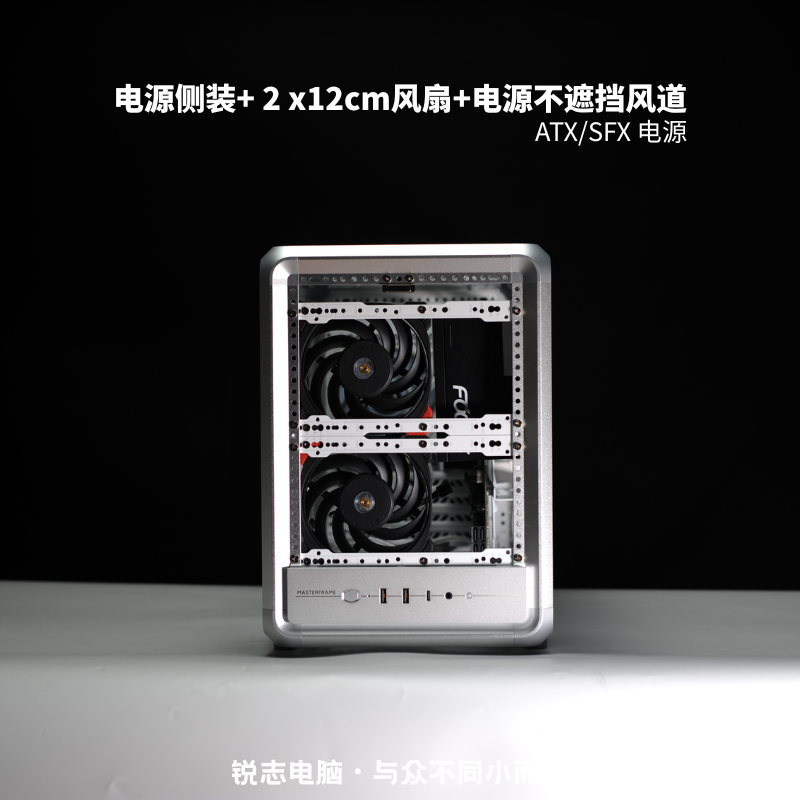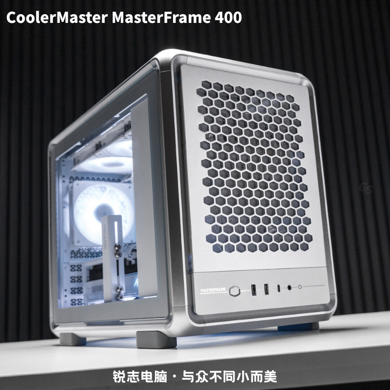 酷冷至尊CoolerMaster MF400 小型化铝合金MATX侧透机箱 横竖可置