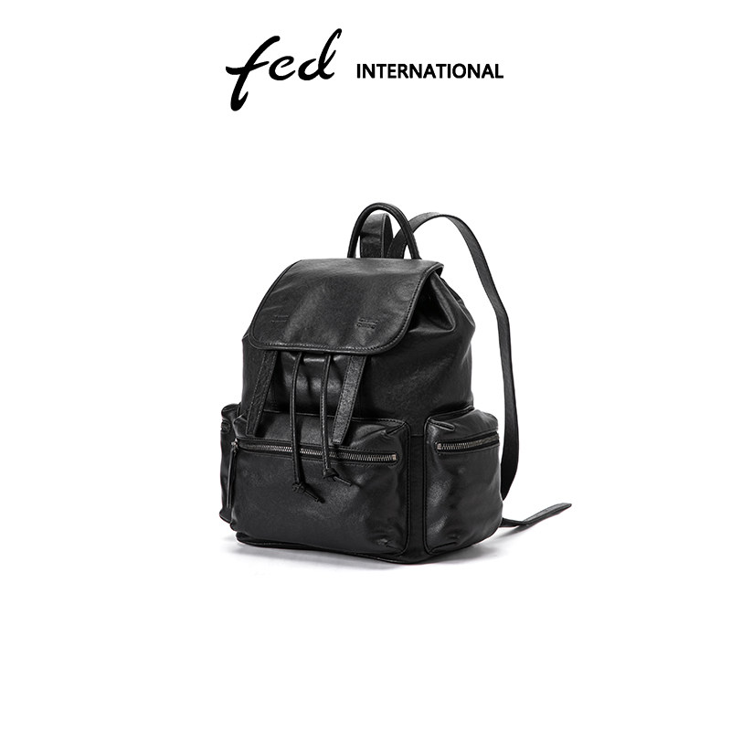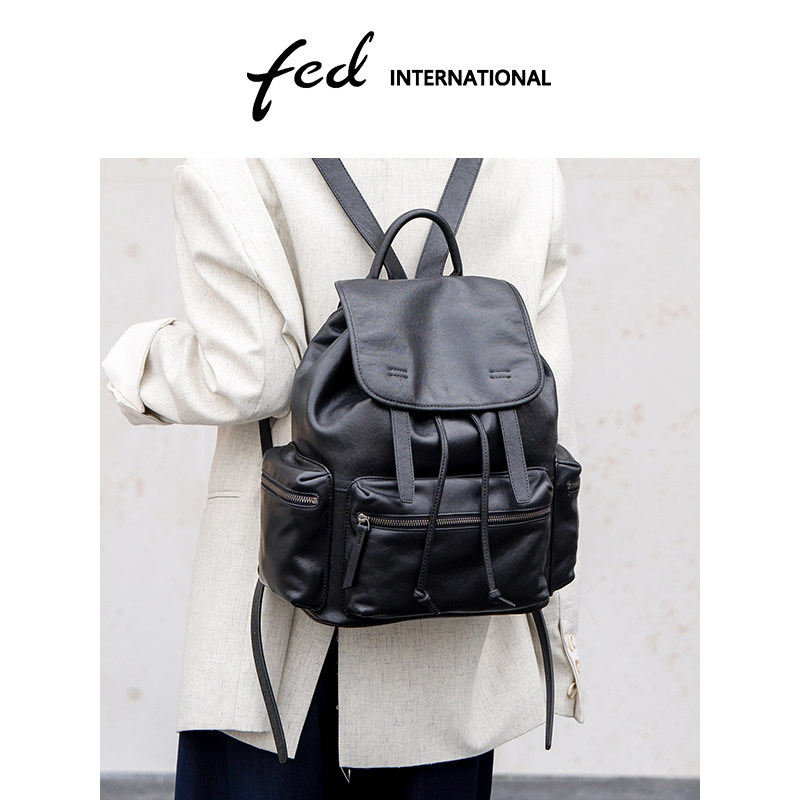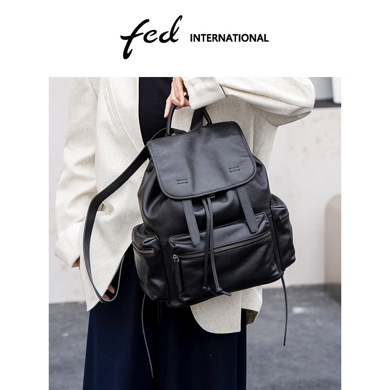 fed植鞣皮头层牛皮真皮女包手提旅游休闲背包大容量双肩包BFA7043