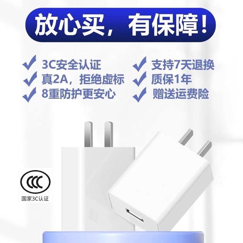 5V2A充电头安卓多口USB快充头10w电源适配器数据线套装适用苹果华为荣耀小米手机充电器耳机手表音响年货节