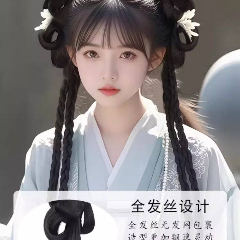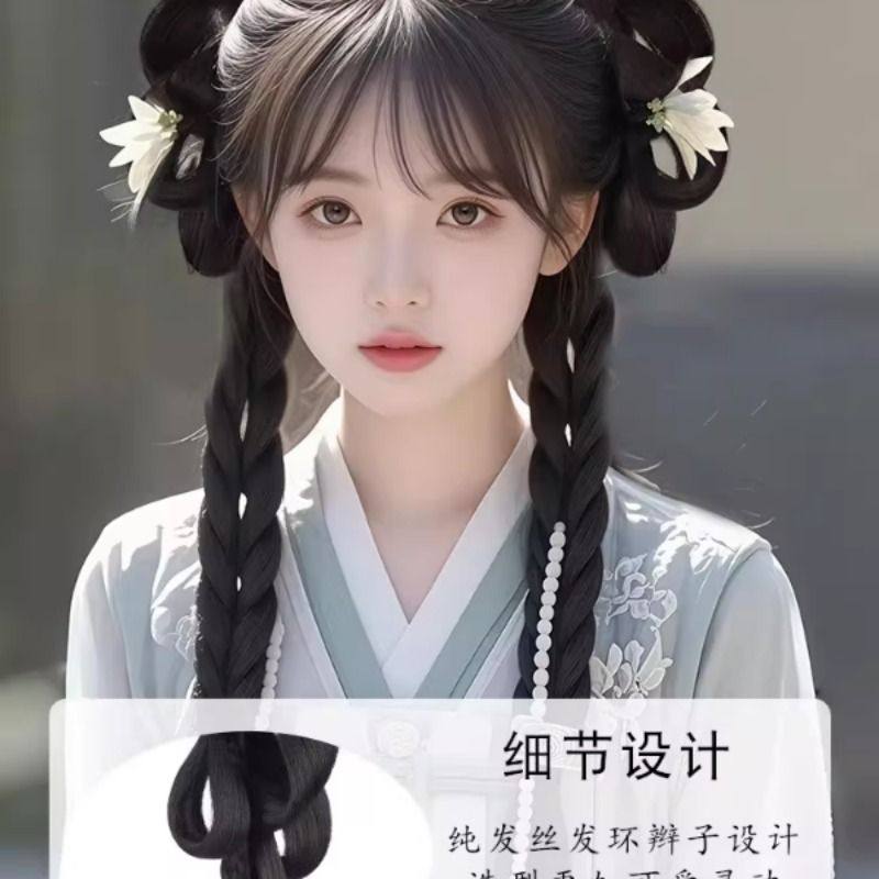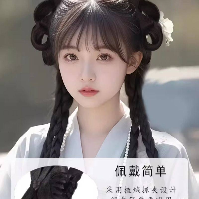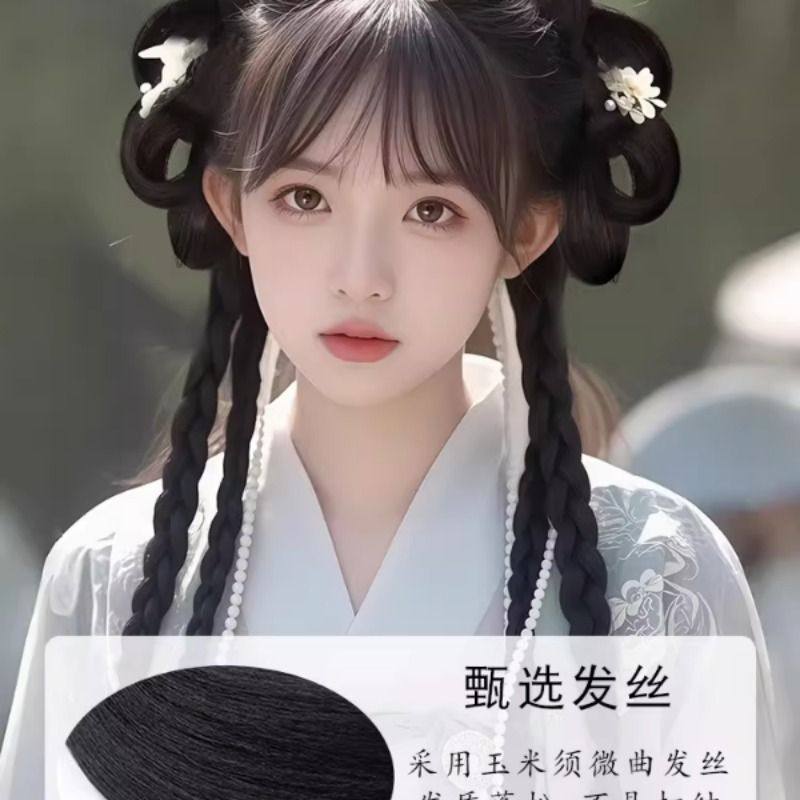 儿童汉服假发蝴蝶结发髻造型古装假发包女童汉服假发头饰假发古风