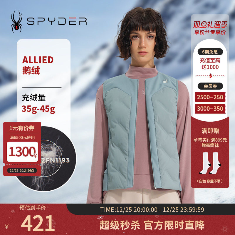 SPYDER蜘蛛秋冬女TRAINING舒适百搭羽绒马甲户外保暖背心23CF206W