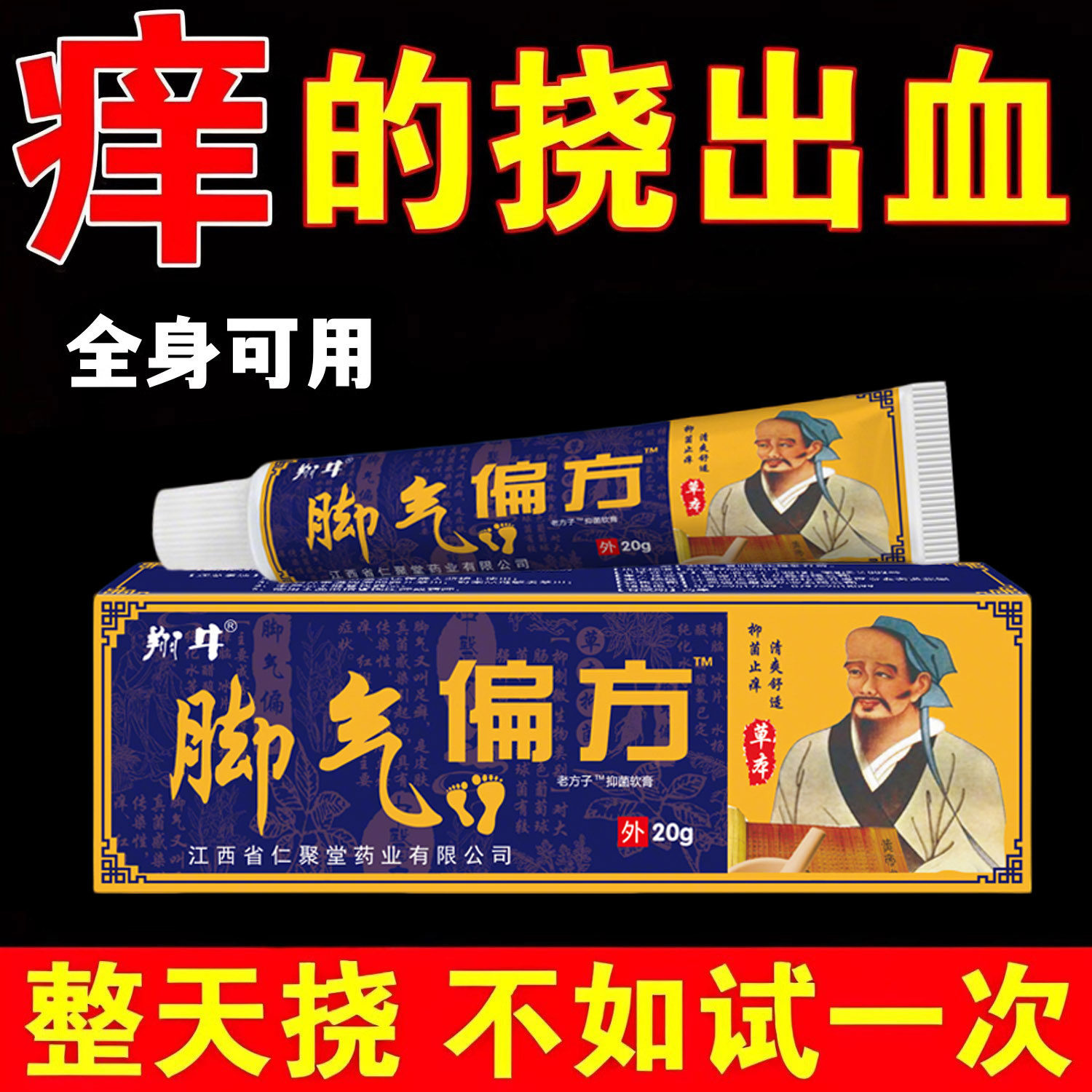 草本抑菌软膏气脚王杀菌止痒治脚脱皮水泡烂脚丫子痒糜烂汗脚臭脚