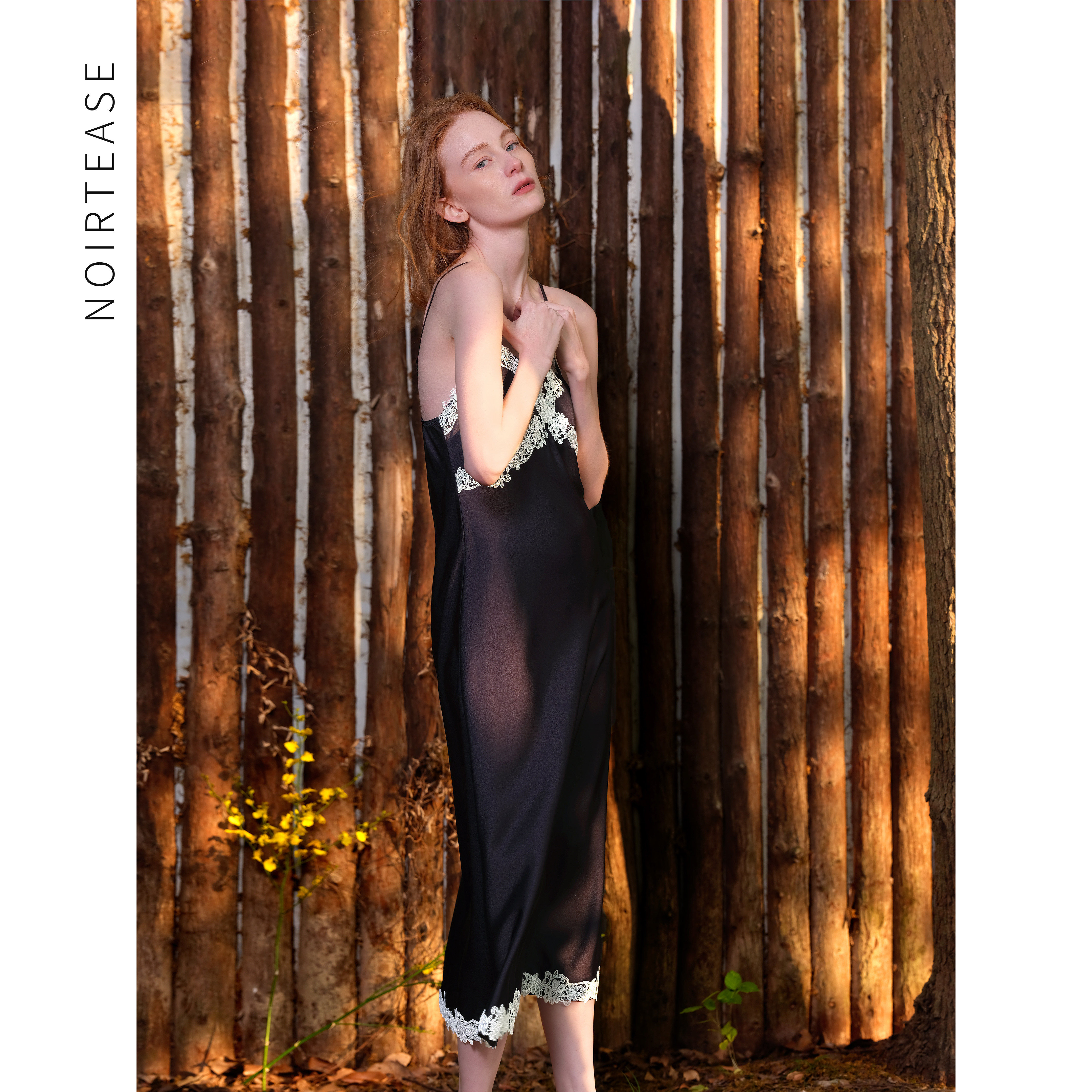 NoirTease春夏缎面丝质薄款吊带长裙打底度假性感睡裙女蕾丝睡衣