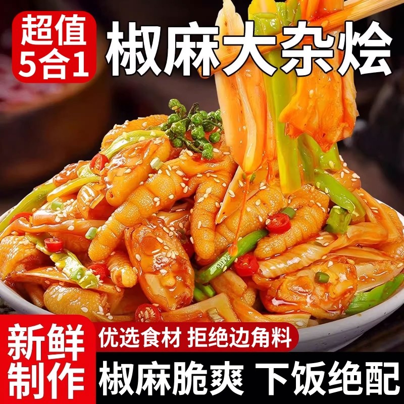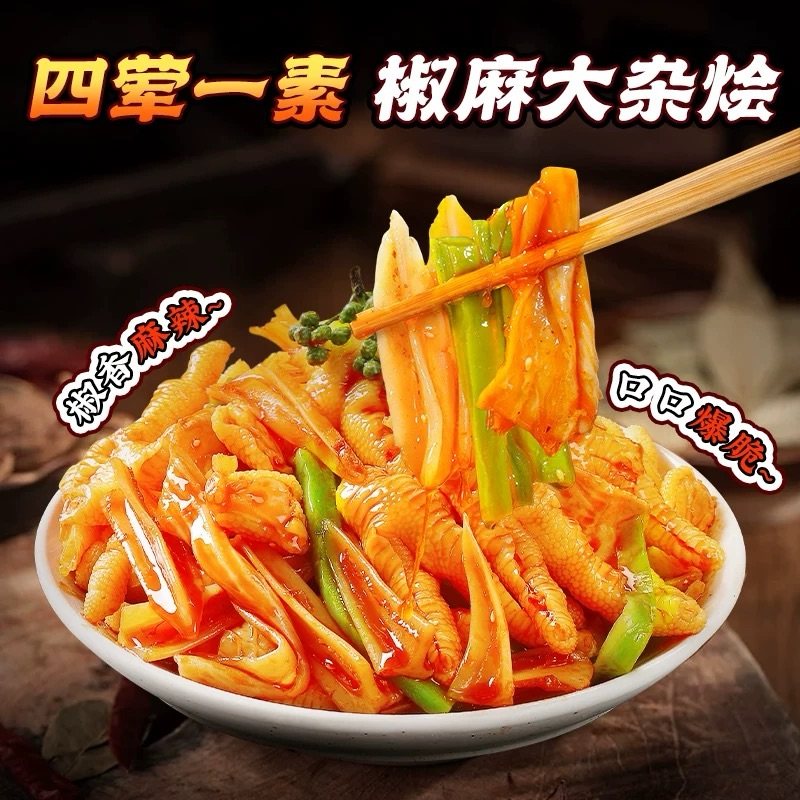椒麻大杂烩无骨鸡爪贡菜卤味熟食即食下酒菜休闲解馋小吃零食柠檬