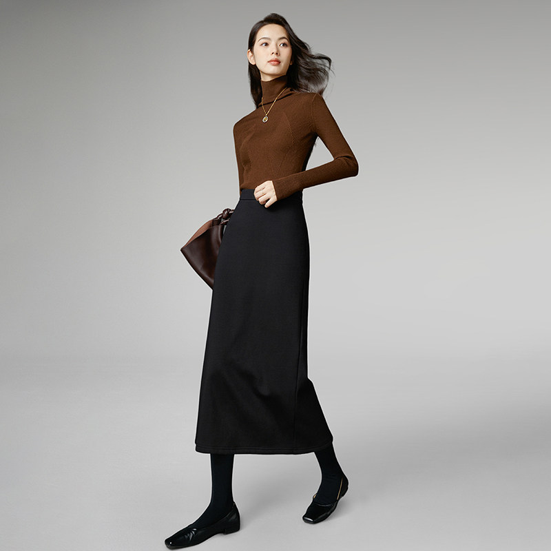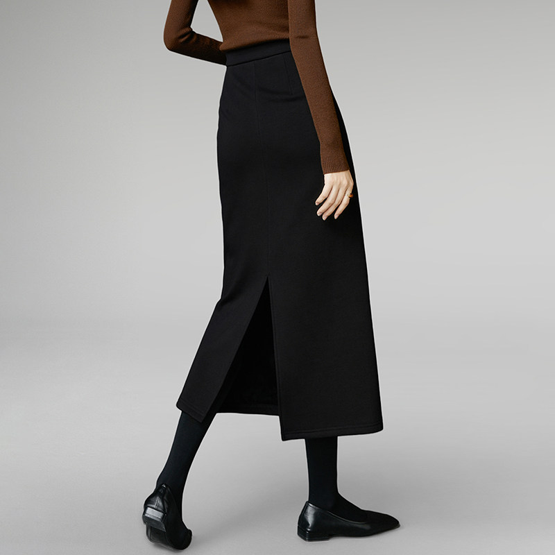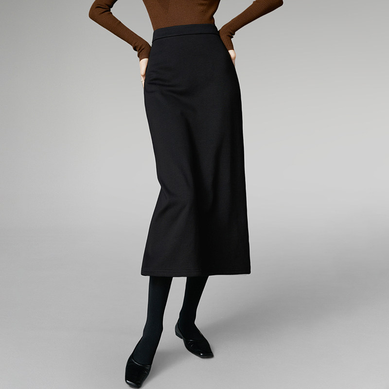 SIINSIIN直筒裙加绒2025年新款高腰收腹半身裙女黑色显瘦A字裙tk