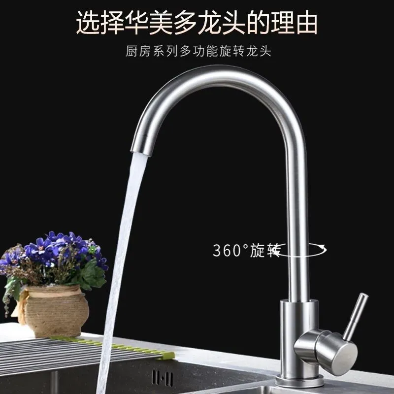 304不锈钢厨房龙头单冷旋转洗菜盆冷热水槽面盆双孔全铜入墙两用