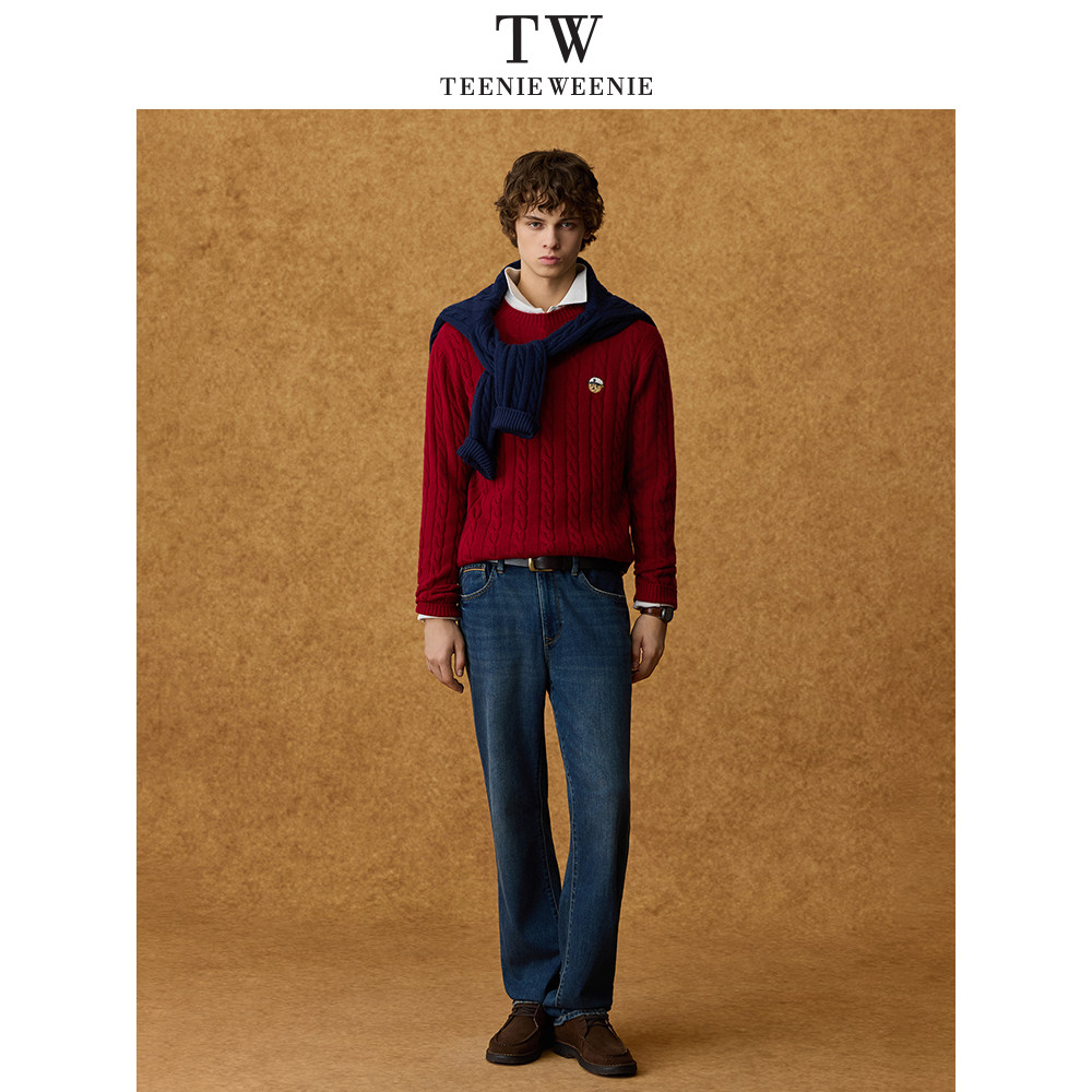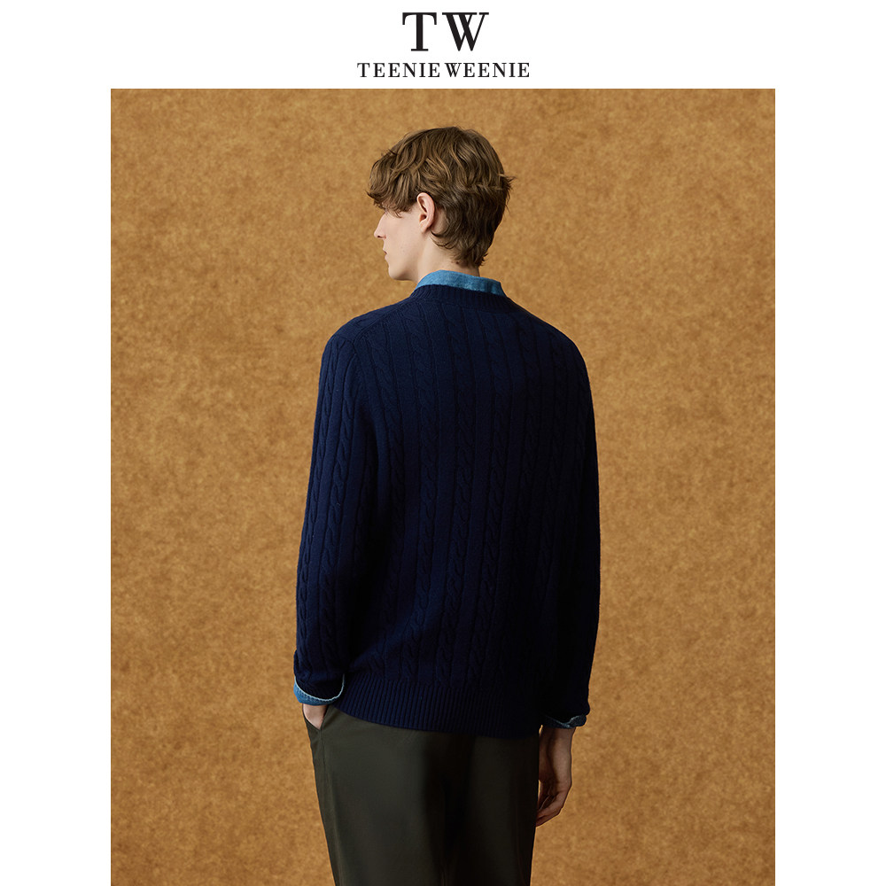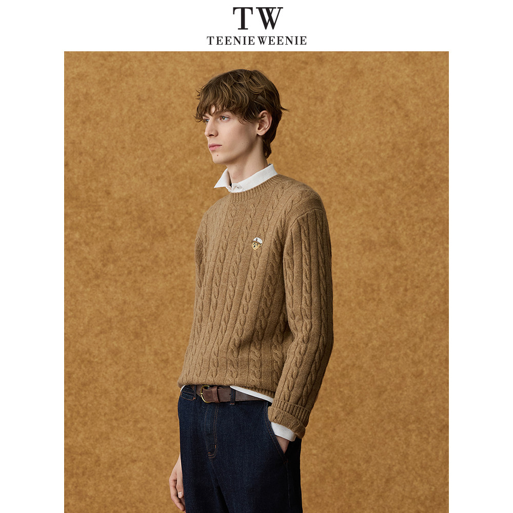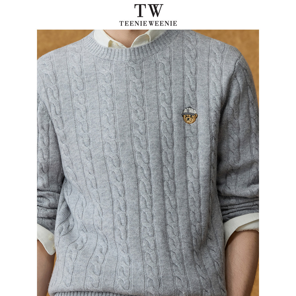 Teenie Weenie小熊男装复古学院风刺绣新款冬季长袖绞花上衣毛衣