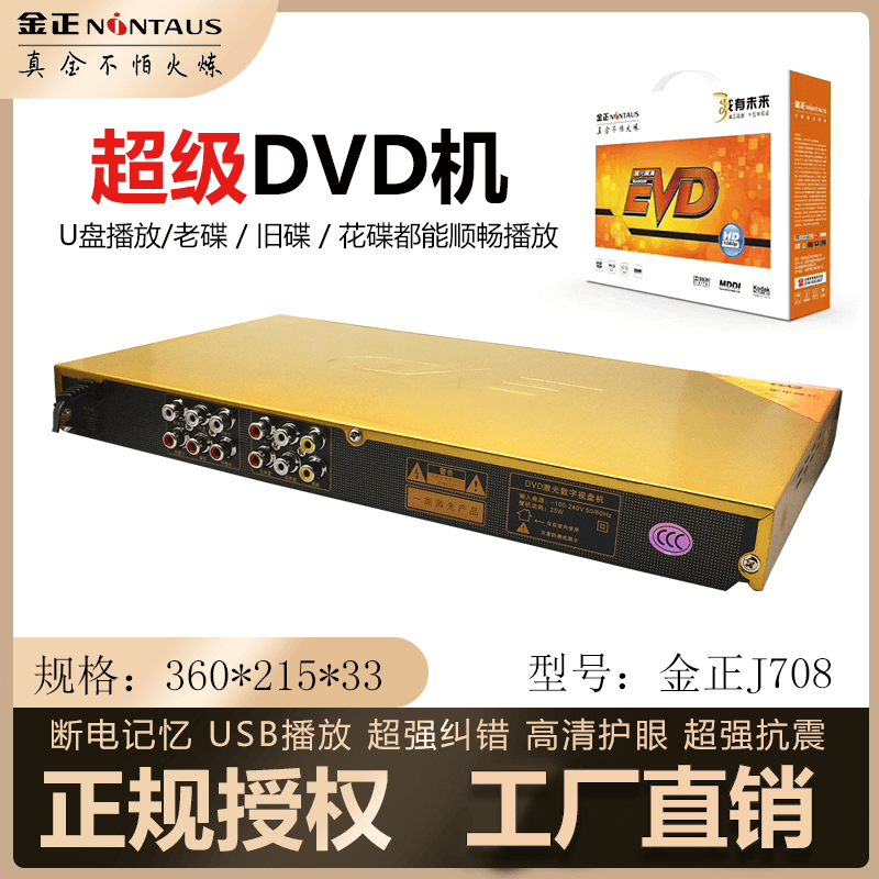 金正DVD影碟机儿童学习机家用蓝光播放机CD光盘高清播放器便携式