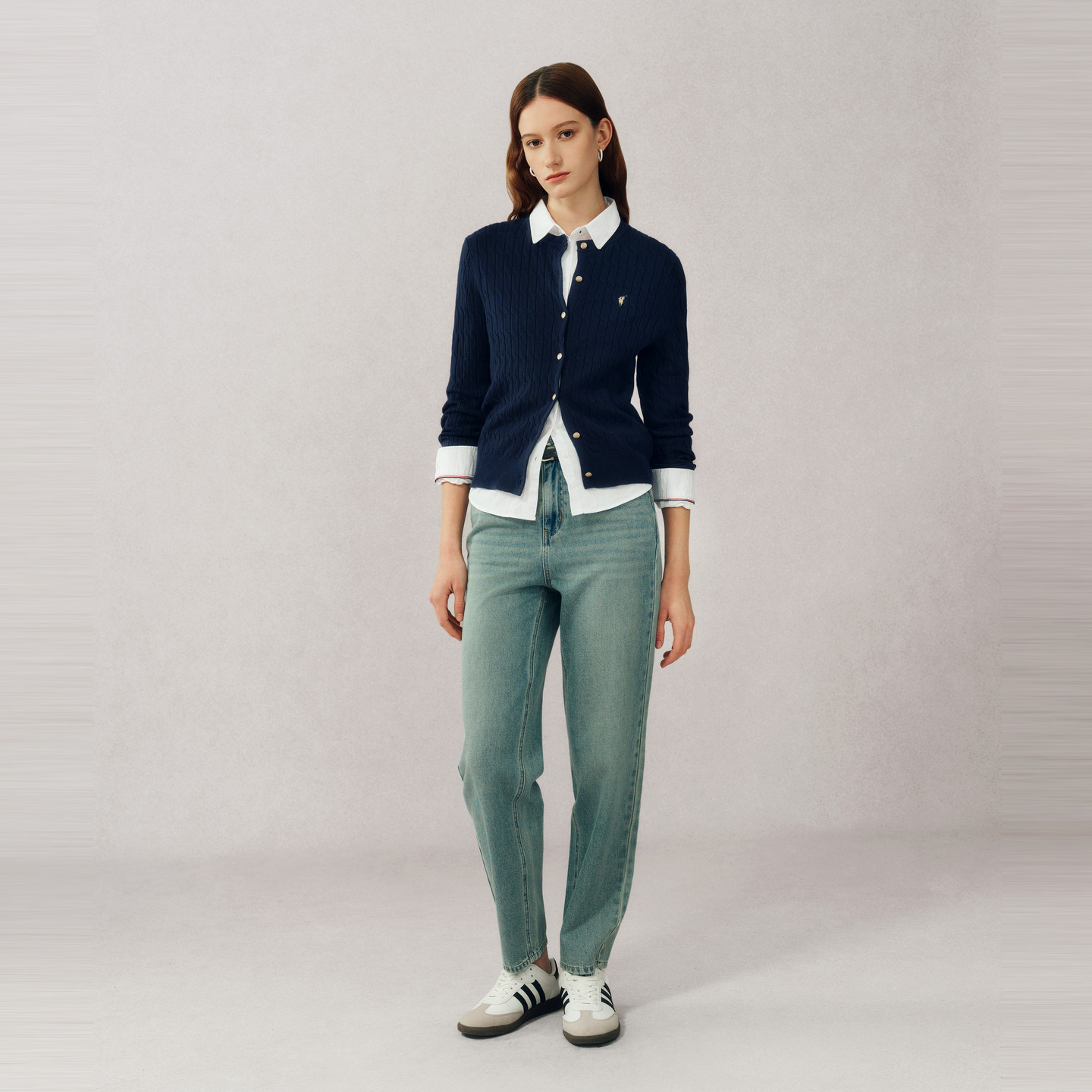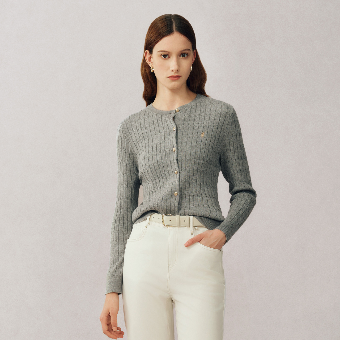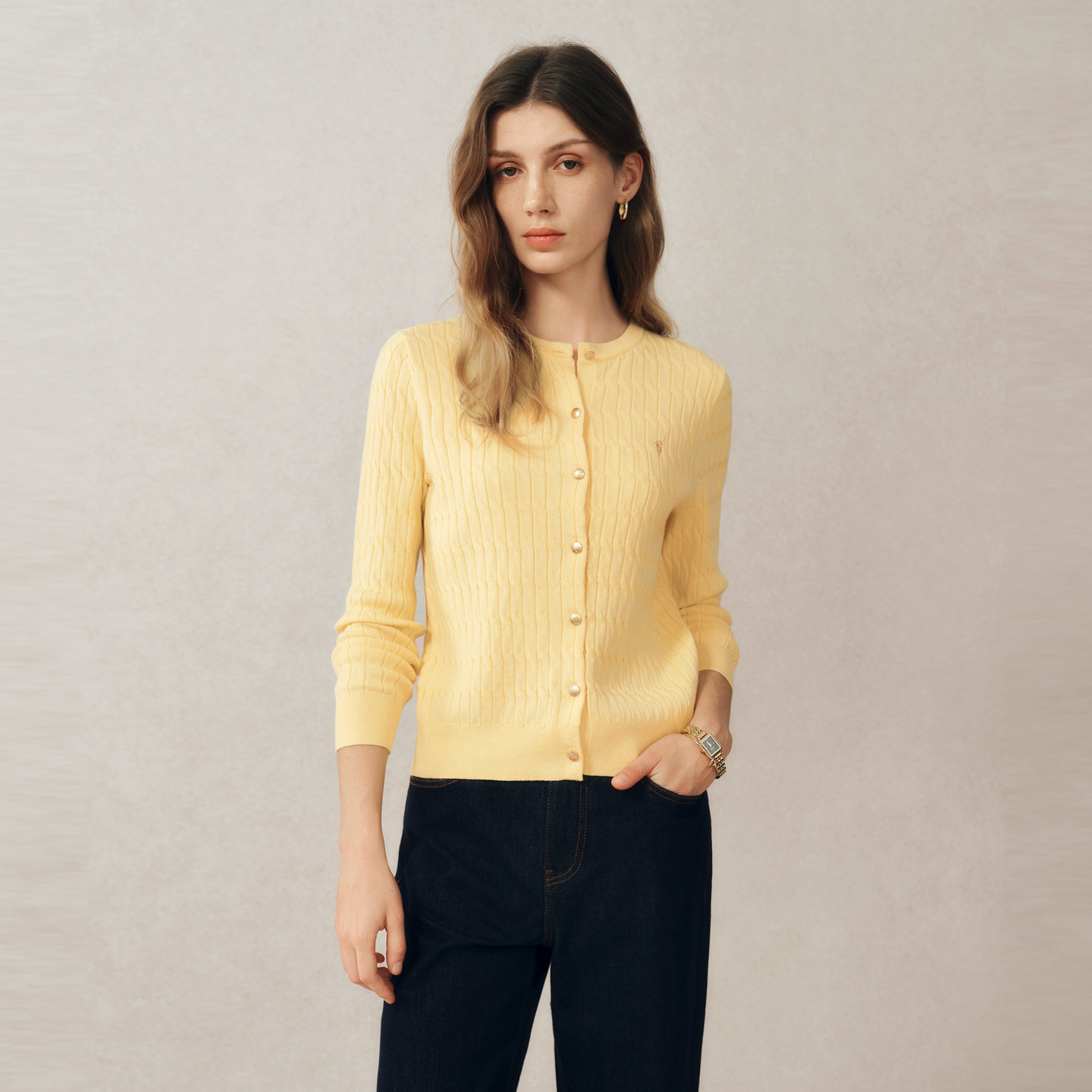 POLOWALK女式长袖针织衫2025秋冬新品绞花休闲通勤针织衫上衣女款