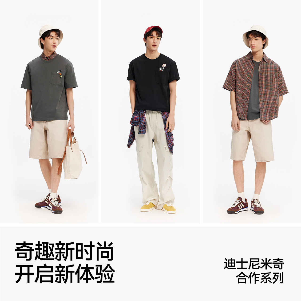 森马迪士尼米奇家族合作系列短袖T恤男纯棉绣花上衣2025新款夏装