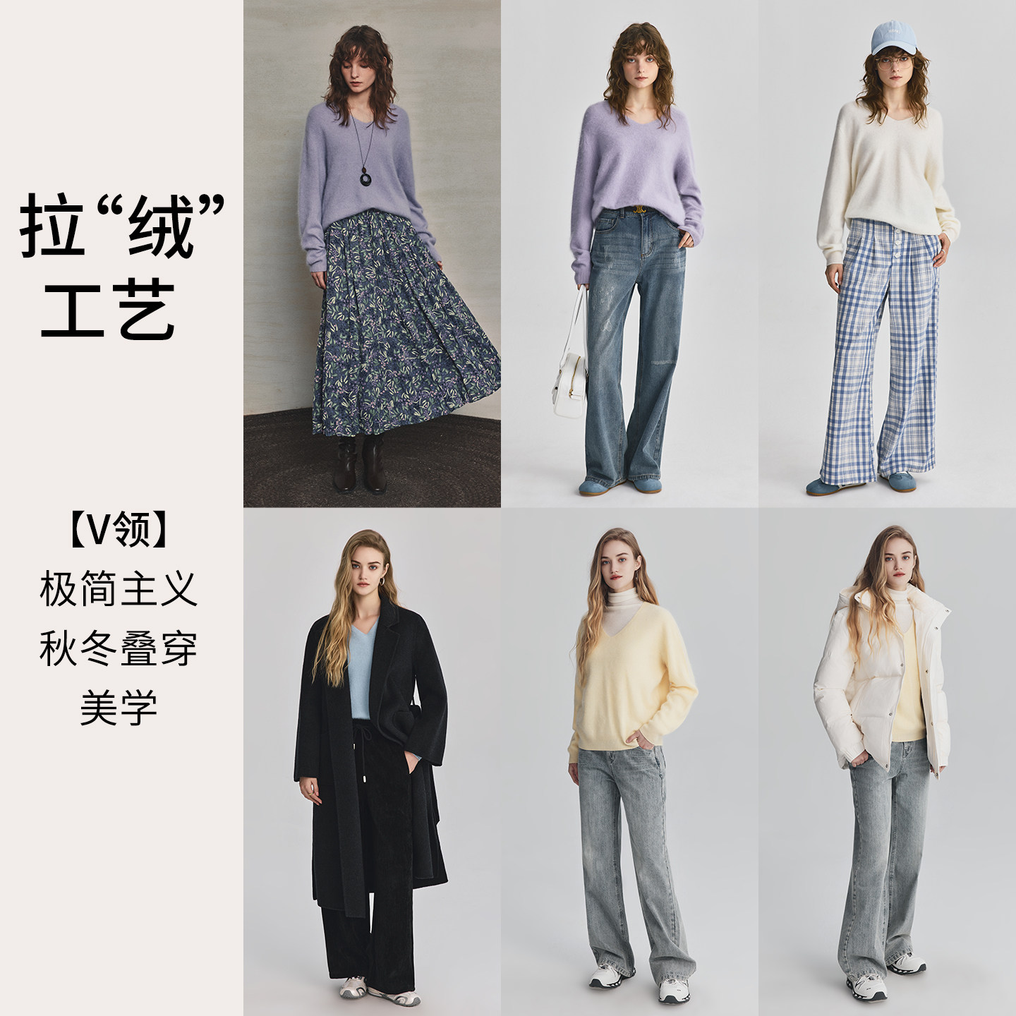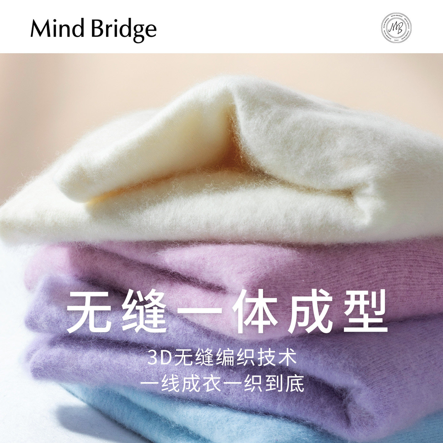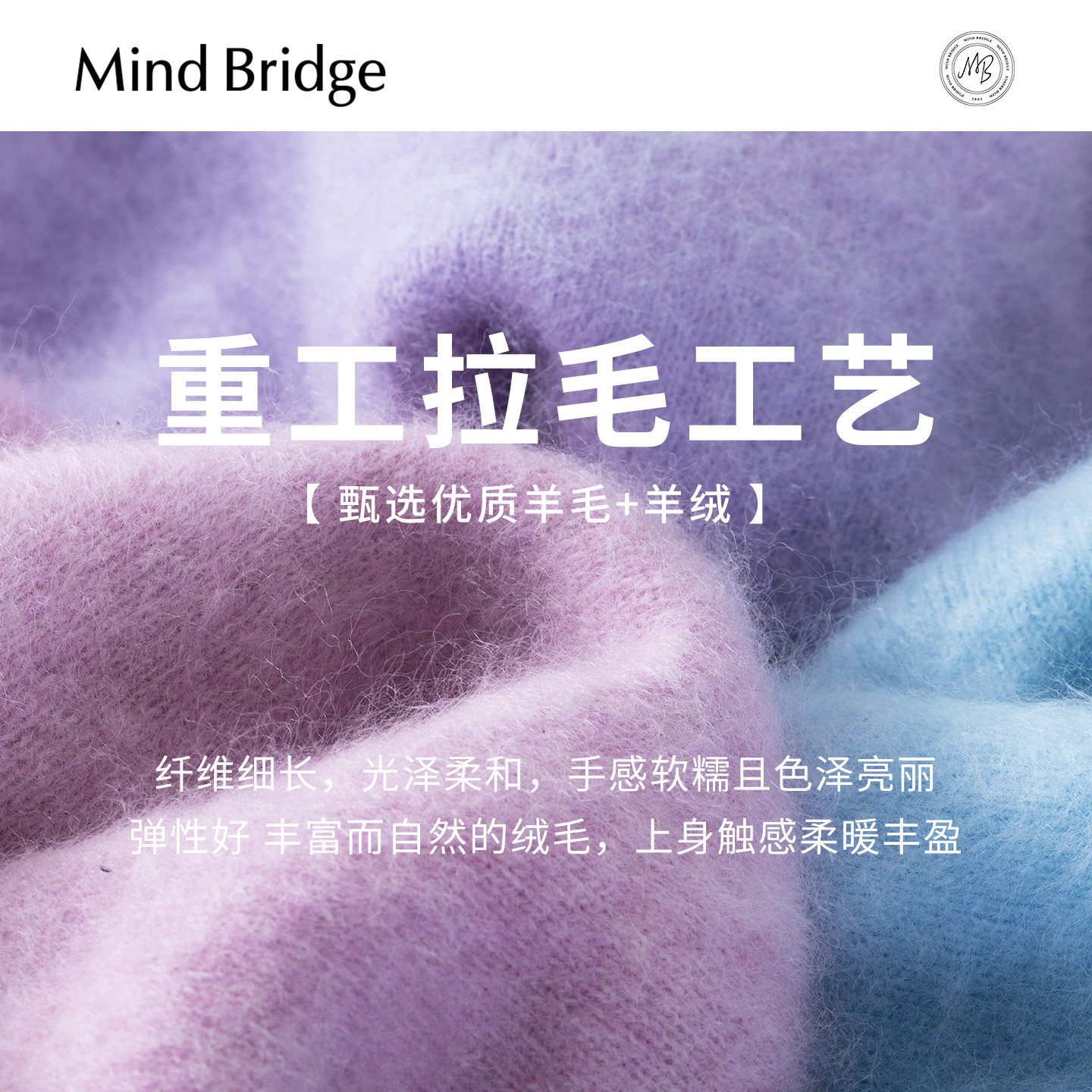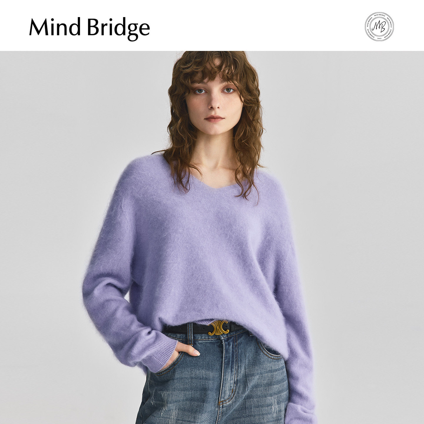 Mind Bridge【绵羊毛】2025秋拉毛V领毛衣女士无缝一体山羊绒针织