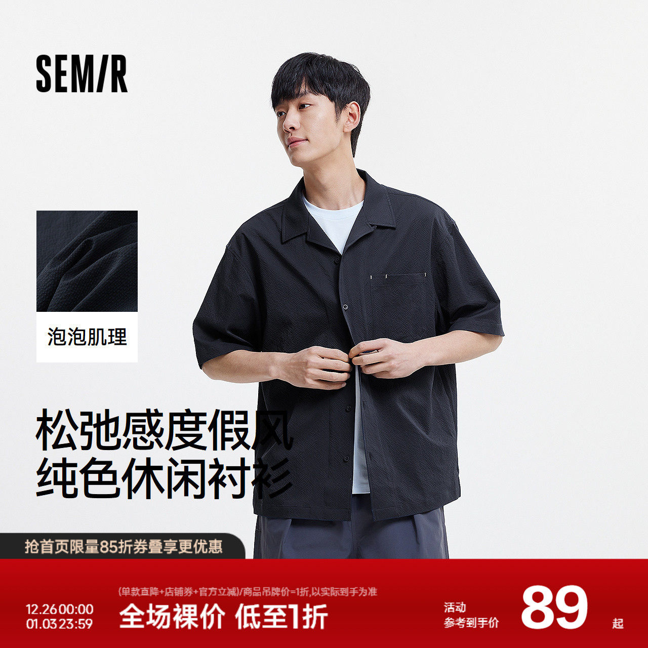 森马短袖衬衫男松弛肌理感度假风衬衣2025夏新款上衣纯色百搭宽松