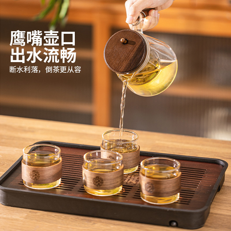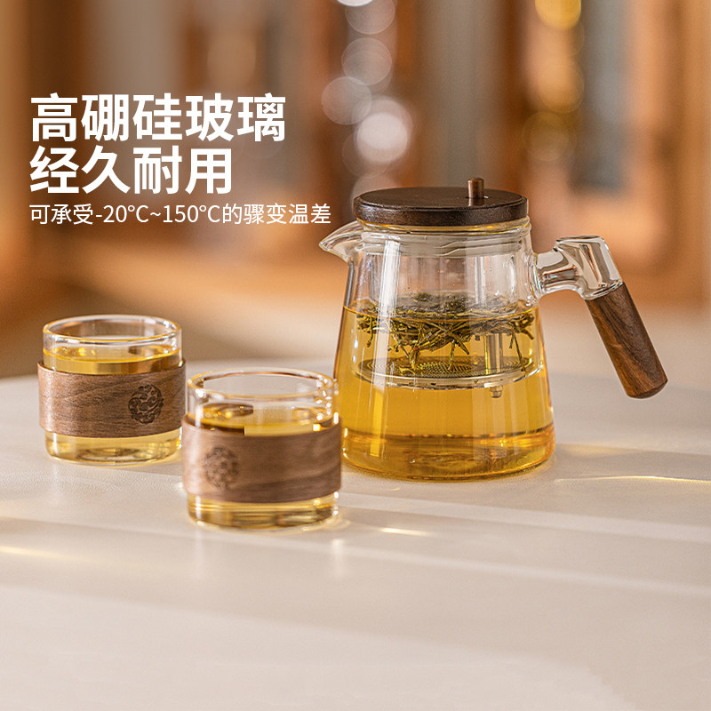 高硼硅玻璃 防烫胡桃木 304不锈钢茶滤