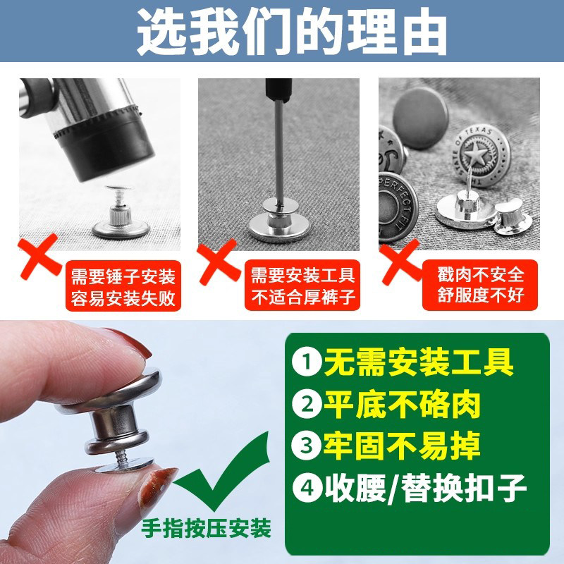 牛仔裤纽扣男女免打孔可调节钮扣固定裤子改腰围大小收腰扣子配件