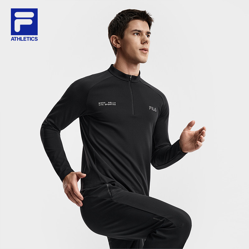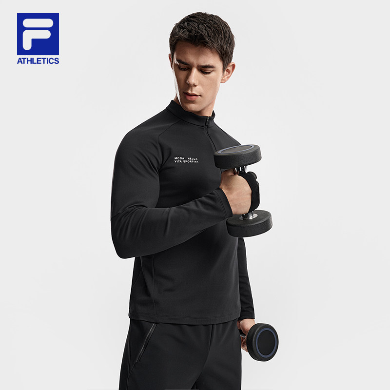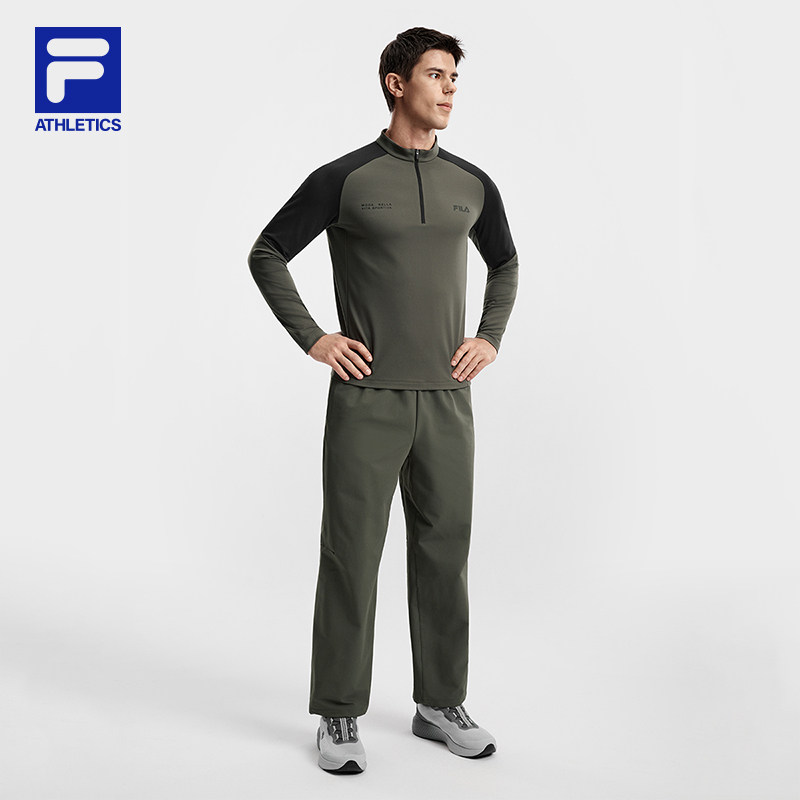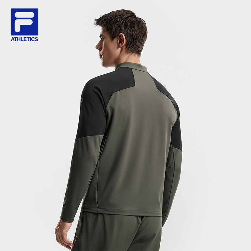 FILA 斐乐官方男子针织长袖上衣2026春季新款健身运动拼色基础长T